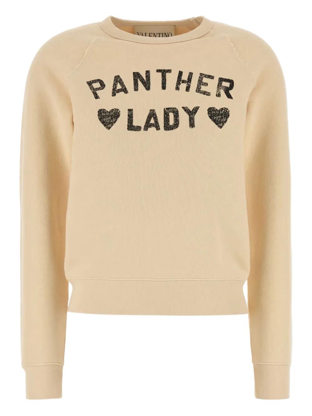 Valentino Ready To Wear beige cotton front Panther Lady print logo back-print crew neck long sleeves ribbed cuffs and hem