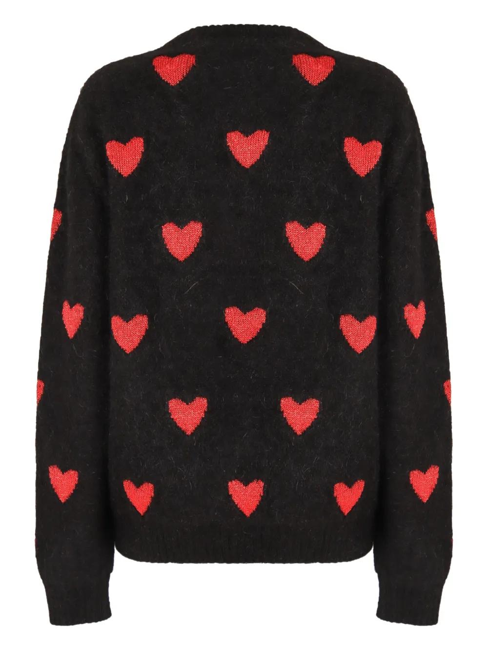 black heart pattern ribbed knit edges crew neck long sleeves wool blend