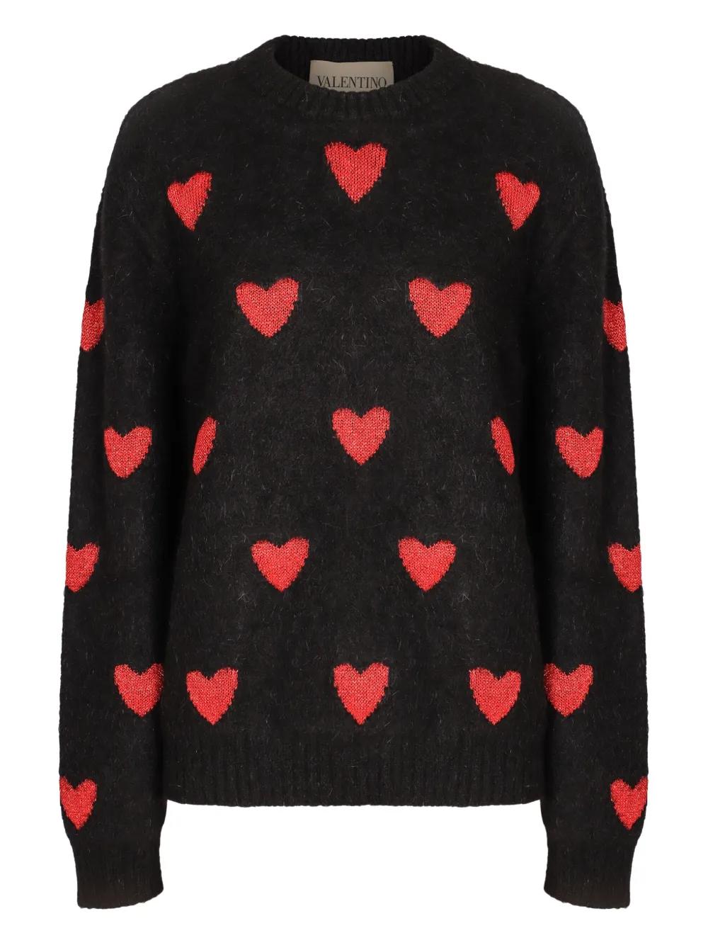 Valentino Garavani heart-pattern ribbed sweater - Black