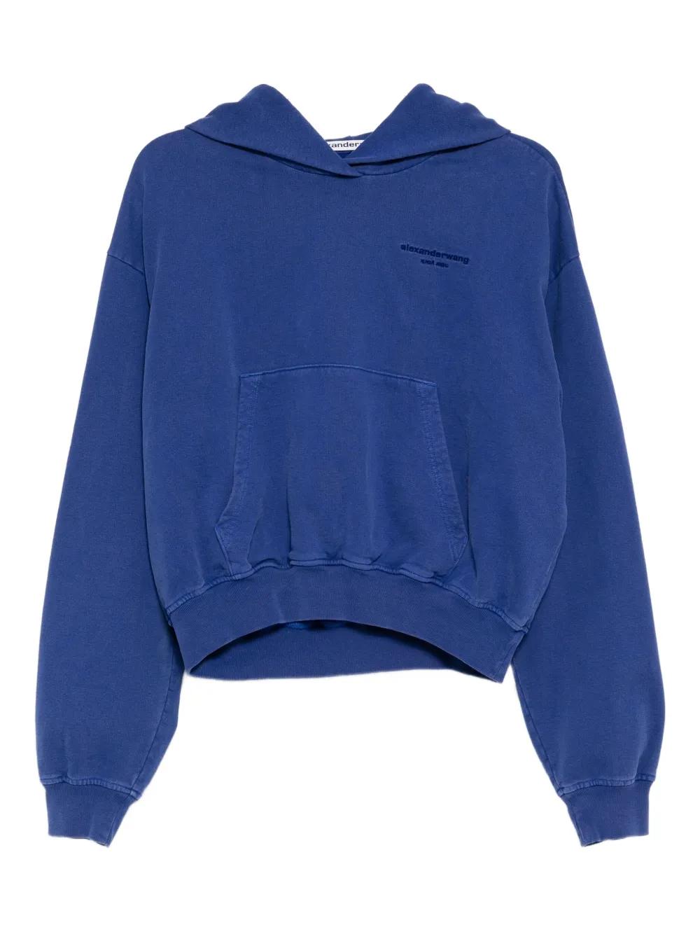 royal blue front pouch pocket embroidered logo to the front ribbed cuffs and hem