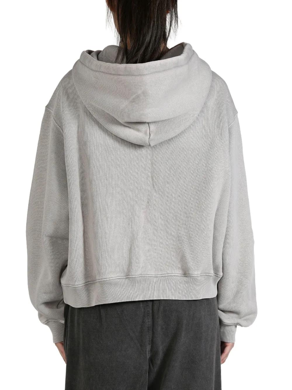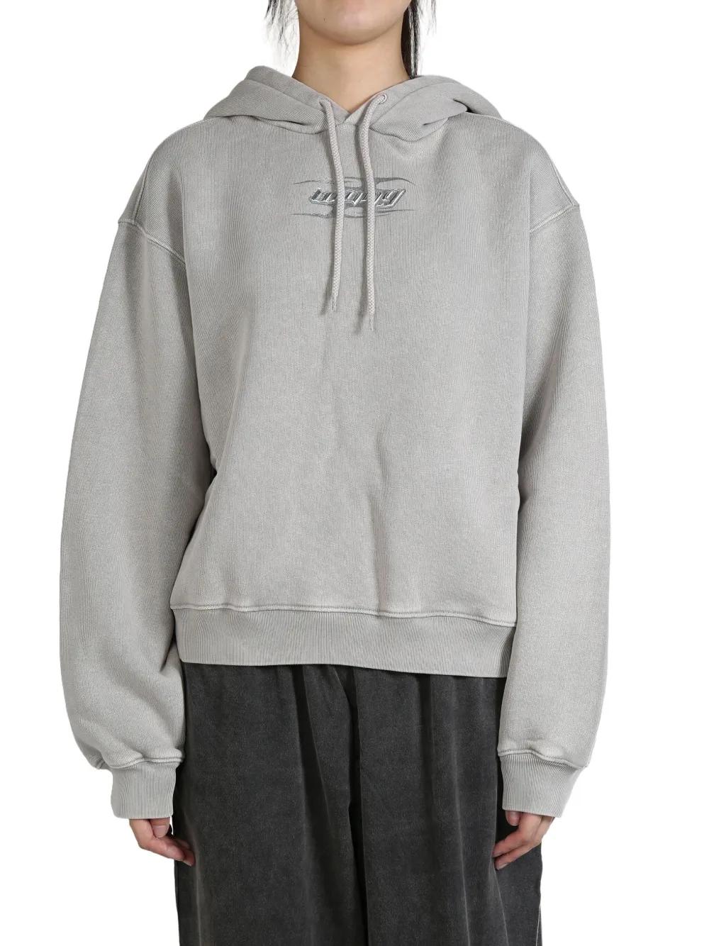 medium grey cotton embroidered logo to the front drawstring hood drop shoulder long sleeves ribbed cuffs and hem