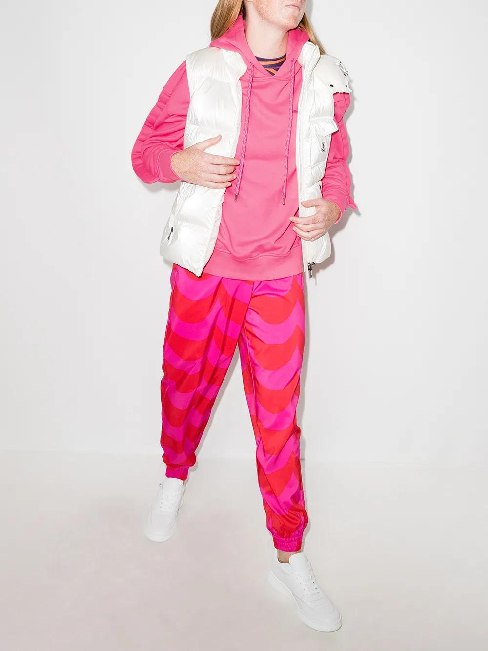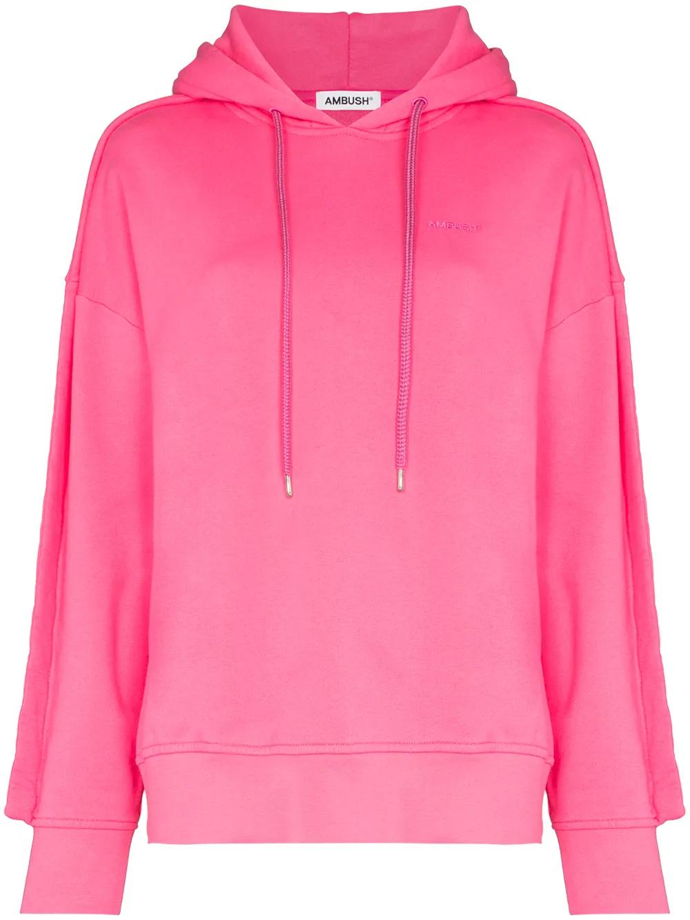 pink cotton drawstring hood drop shoulder long sleeves embroidered logo at the chest ribbed cuffs ribbed hem