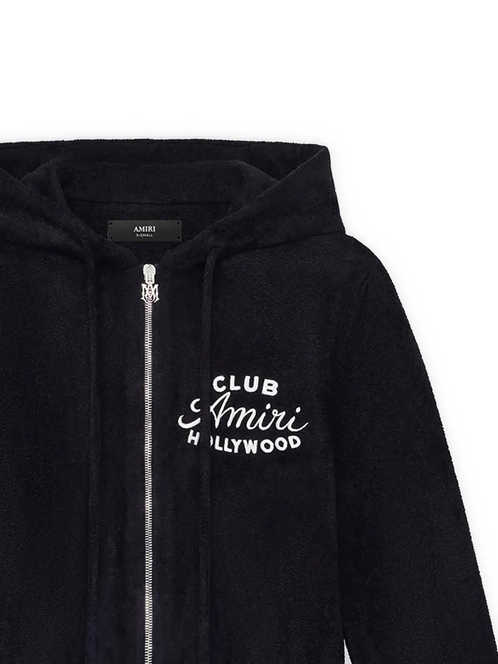 black zip fastening drawstring hood long sleeves ribbed cuffs