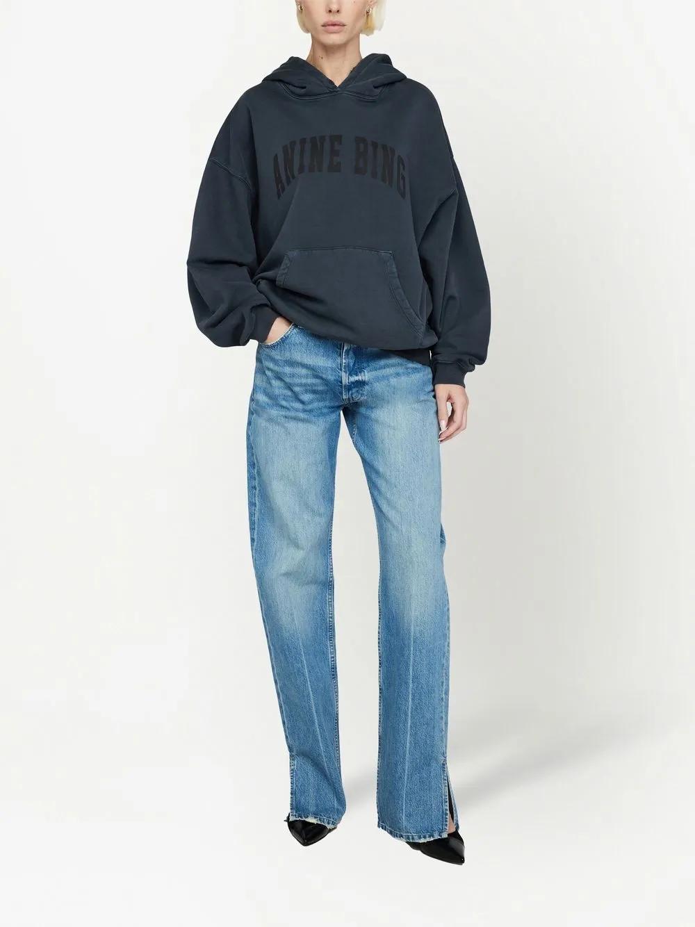 ANINE BING Harvey logo-print cotton hoodie - Black