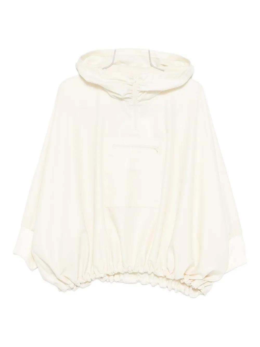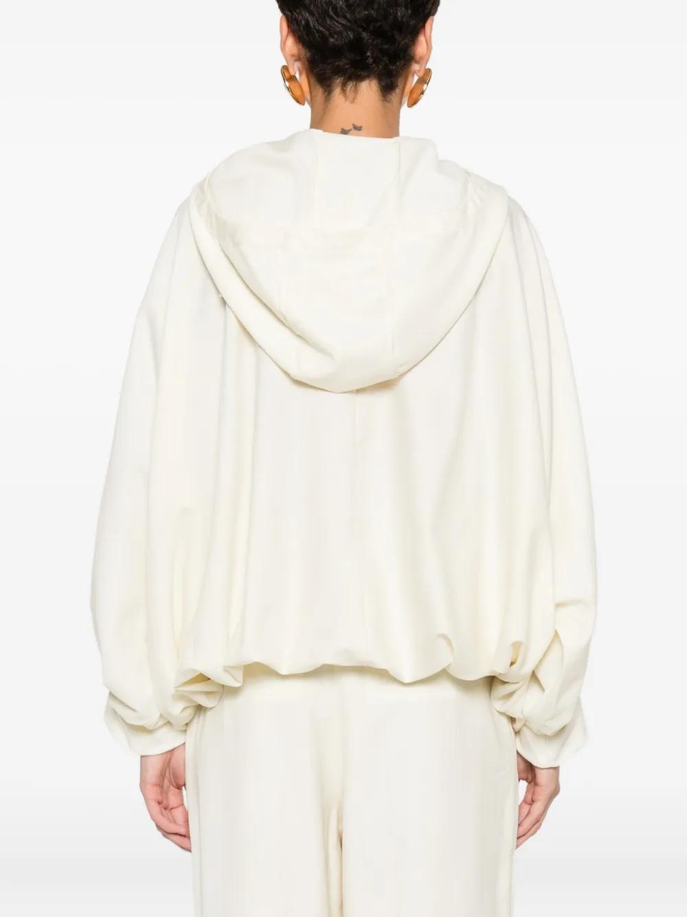 beige zip-fastening pocket detail elasticated hem slouchy hood long sleeves