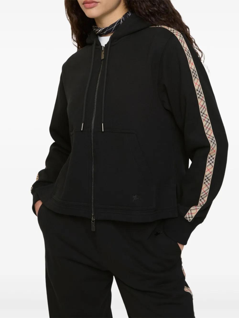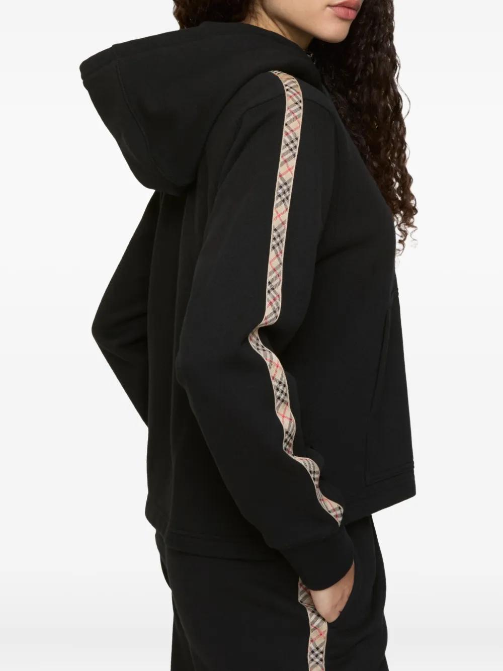 black checked-trim at sleeves drawstring hood pouch pockets ribbed trims