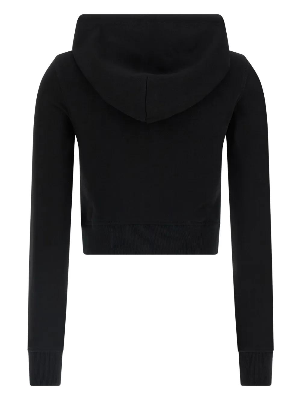 black cotton blend cut-out details long cuffed sleeves hooded neckline embroidered logo