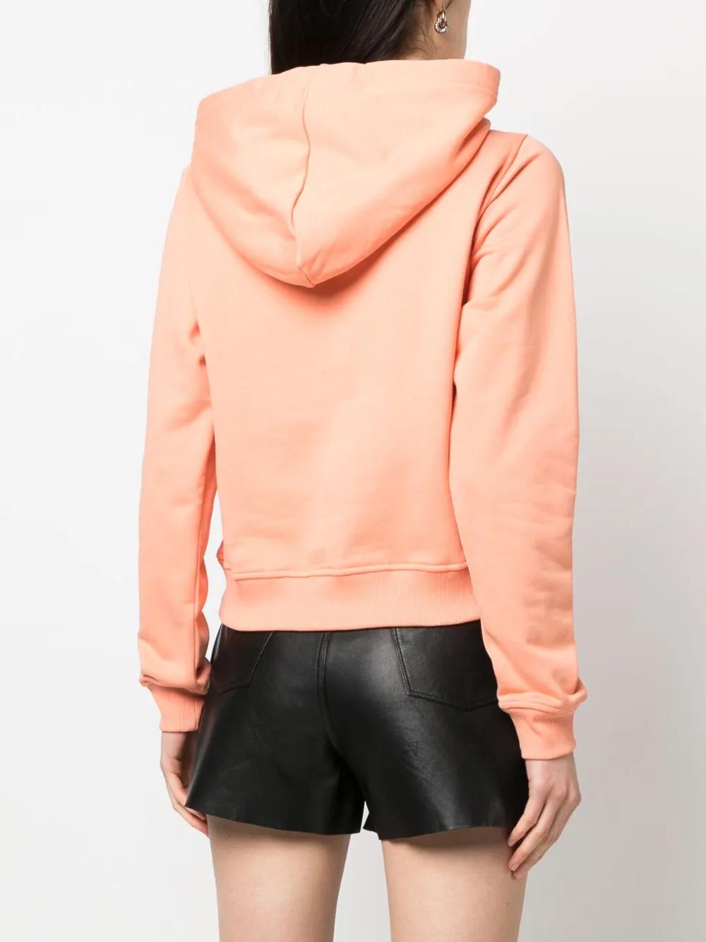 coral cotton logo patch at the chest slouchy drawstring hood long sleeves ribbed cuffs and hem