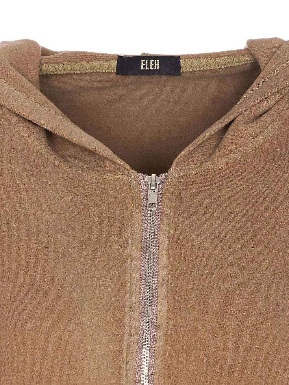 beige logo detail drawstring hood pouch pocket long sleeves ribbed hem