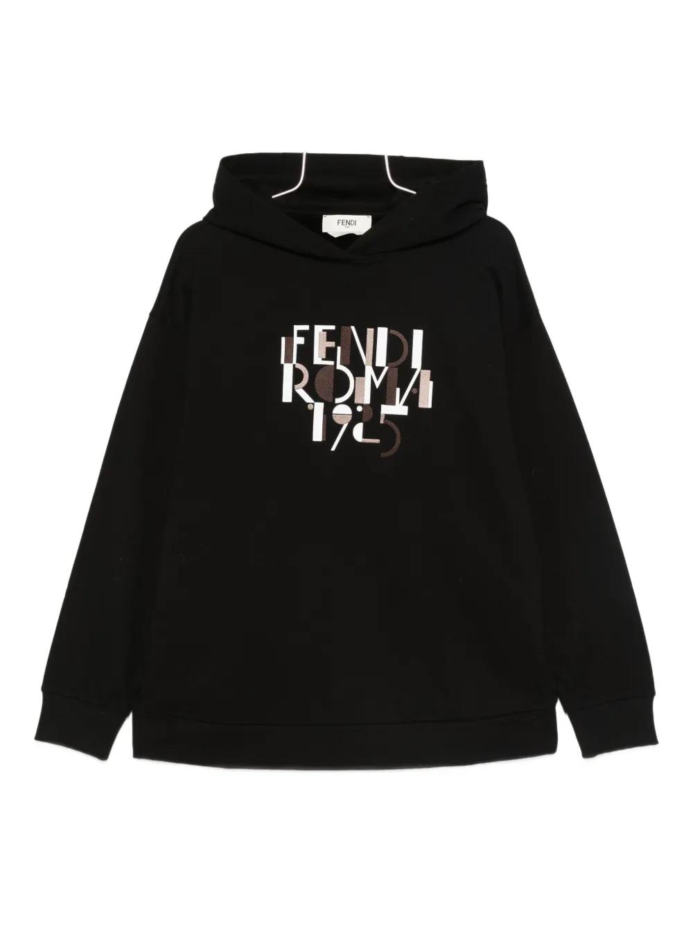 black cotton logo-print at the chest classic hood long sleeves ribbed cuffs and hem
