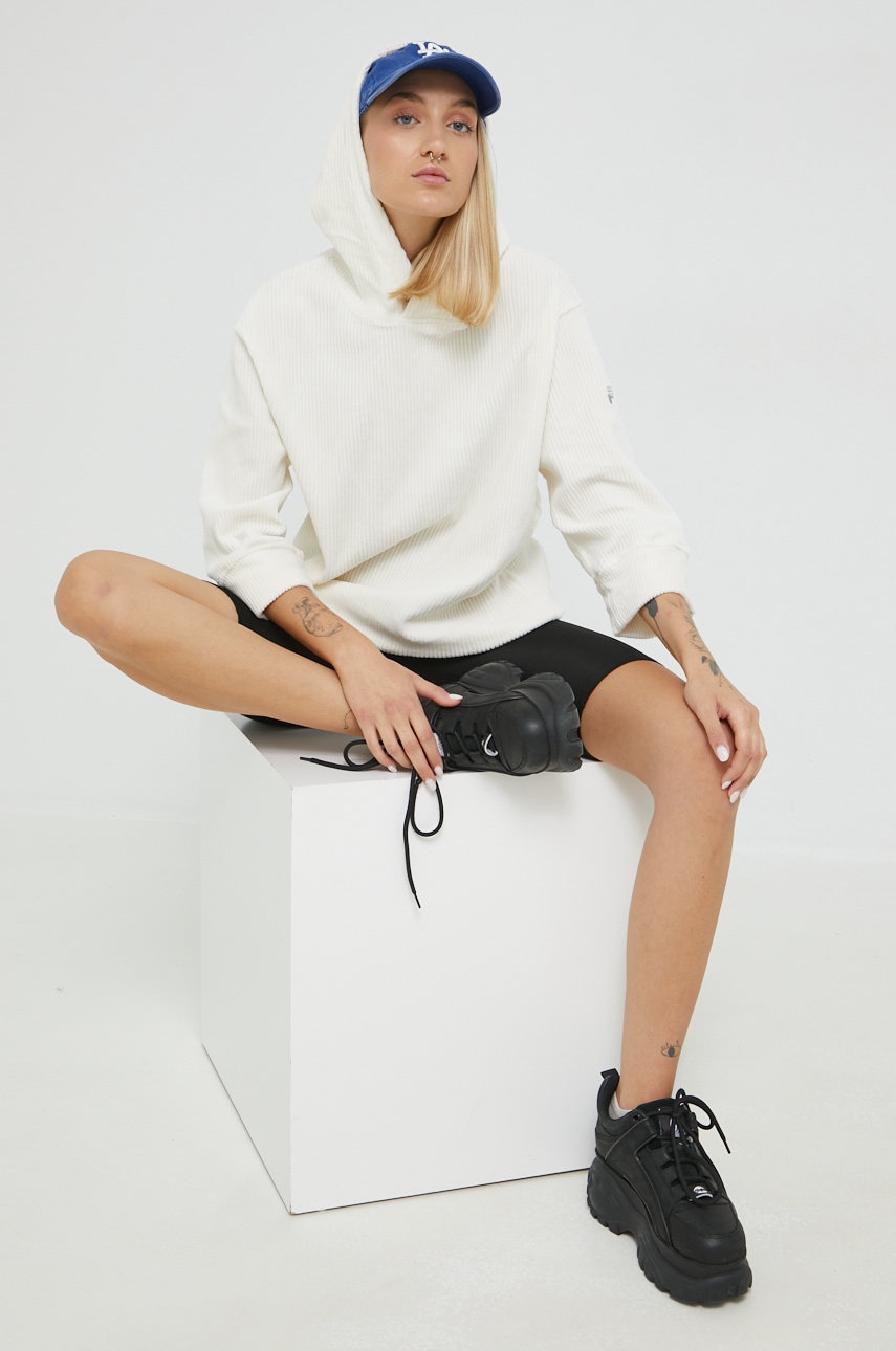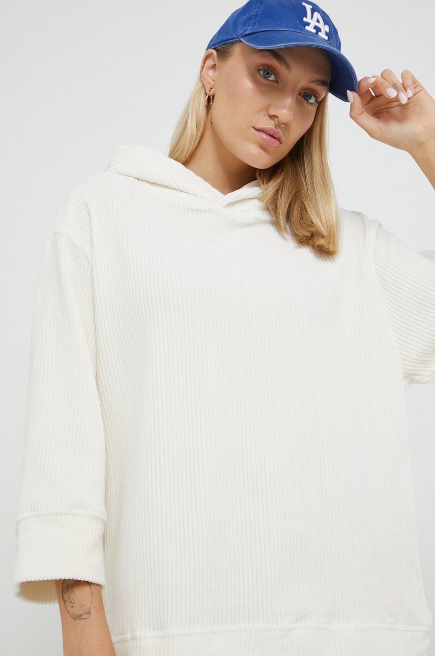 - Fason relaxed. - Model z kapturem. - Obniżona linia ramion. - Rękaw trzy czwarte. - Wykończenie ze ściągacza. - Materiał z fakturą. - Długość: 70 cm. - Szerokość pod pachami: 56 cm. - Wymiary podane dla rozmiaru: S.