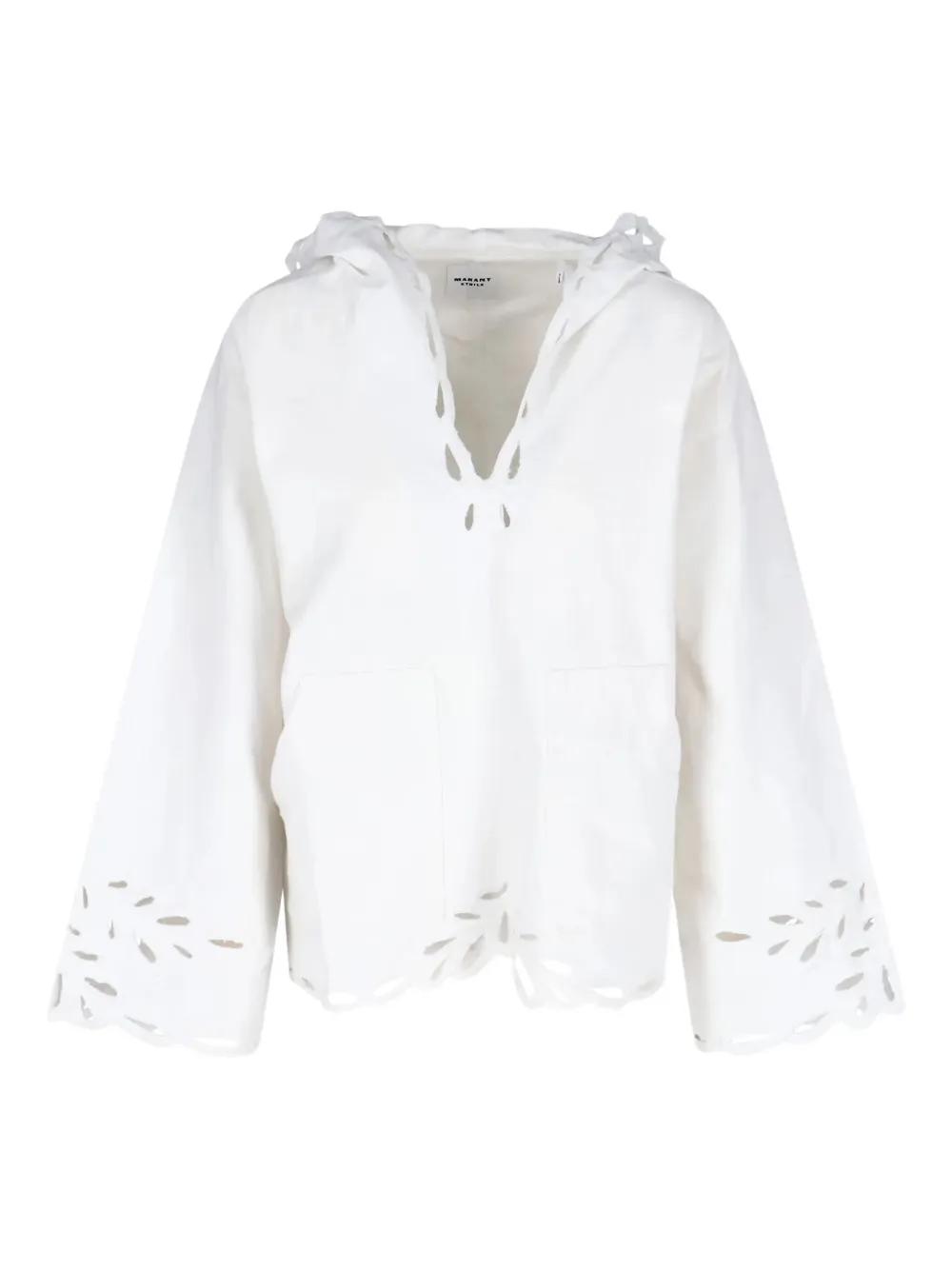 black hooded neckline zip fastening long sleeves balloon sleeves embroidered logo