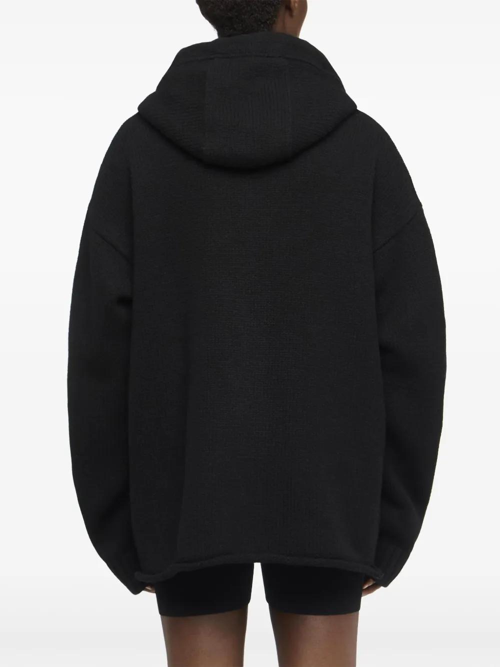 black two-way zip fastening drawstring hood drop shoulder long sleeves