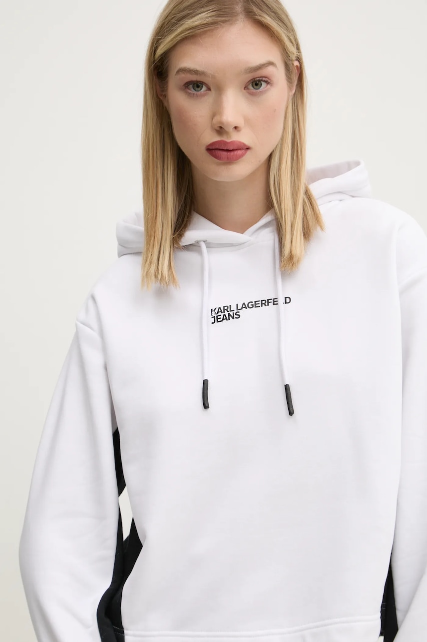 Karl Lagerfeld Jeans bluza damska kolor biały z kapturem z nadrukiem A1W20017