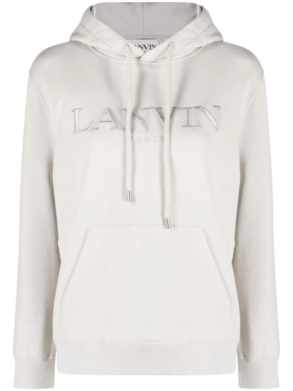Lanvin logo-embroidered cotton hoodie - Neutrals