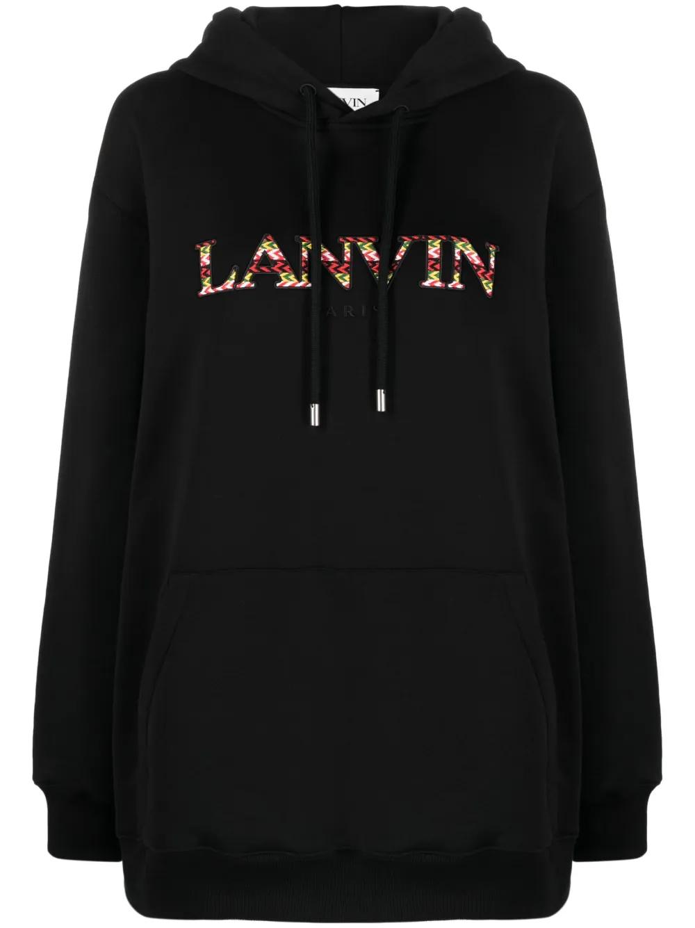 black/multicolour cotton embroidered logo to the front drawstring hem long sleeves front pouch pocket
