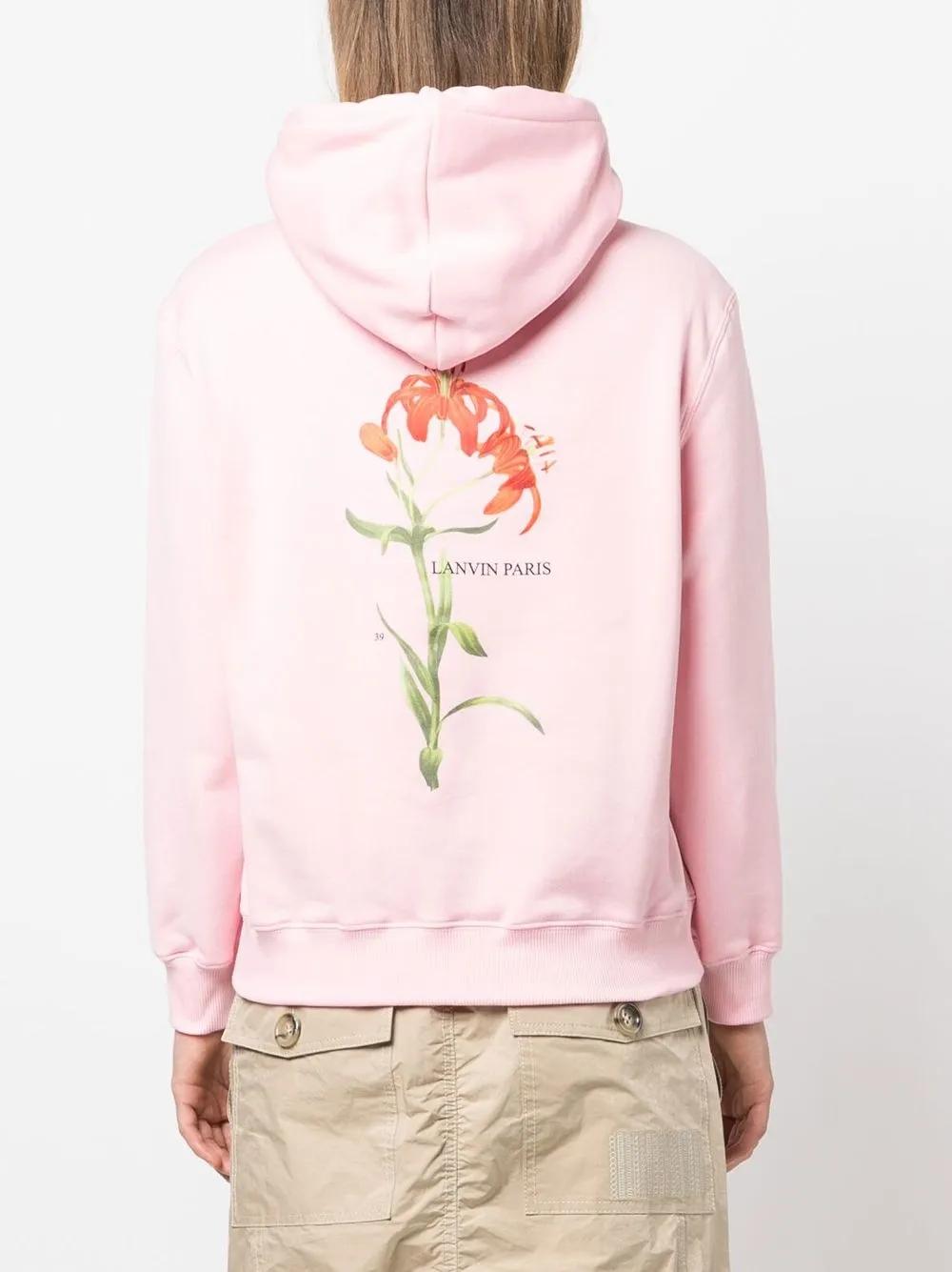 light pink cotton embroidered logo at the chest floral print drawstring hood long sleeves graphic print to the rear