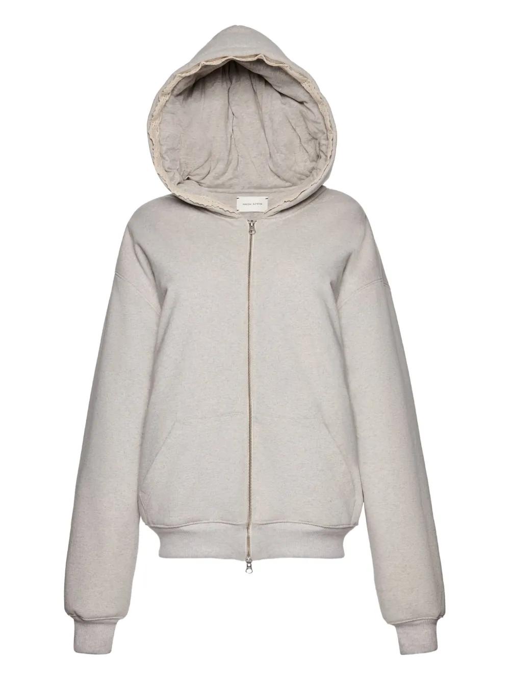 grey lace trim hooded front zip fastening front pouch pockets ribbed trims