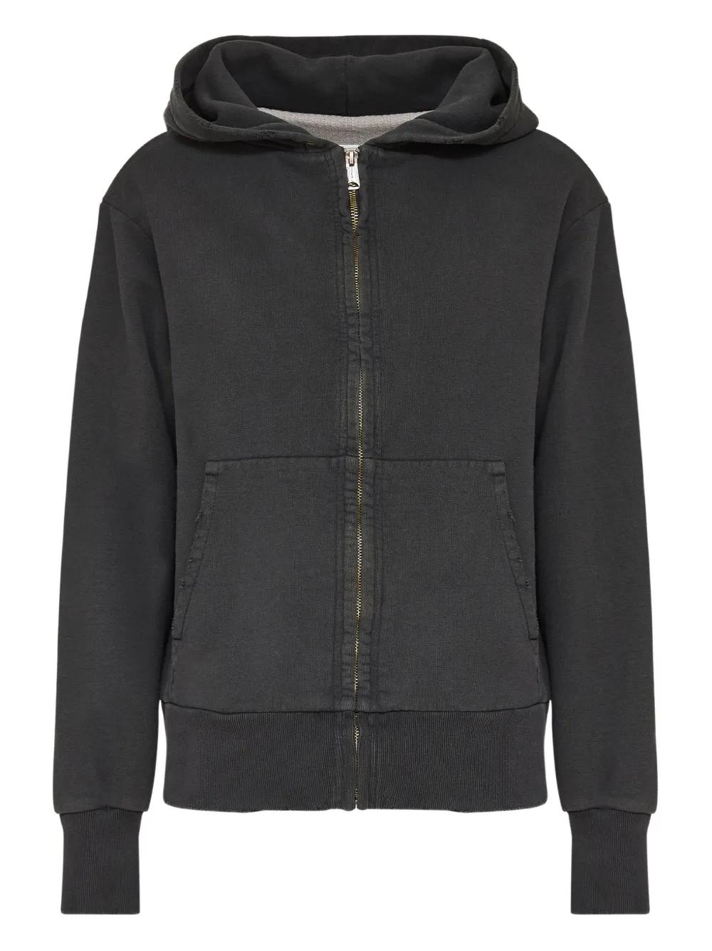 charcoal grey classic hood front zip fastening kangaroo pockets ribbed cuffs