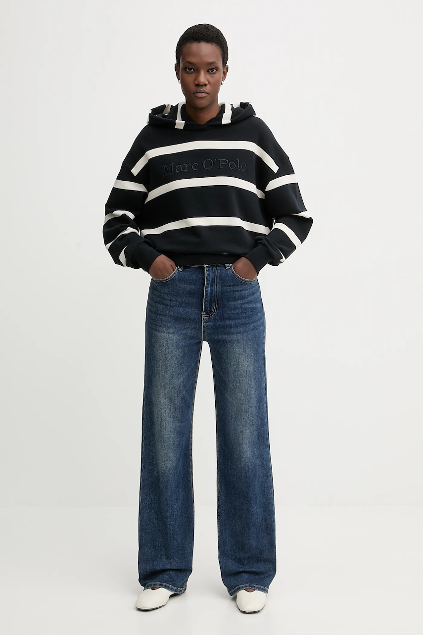 Marc O'Polo bluza bawełniana damska kolor beżowy z kapturem wzorzysta 600407354041