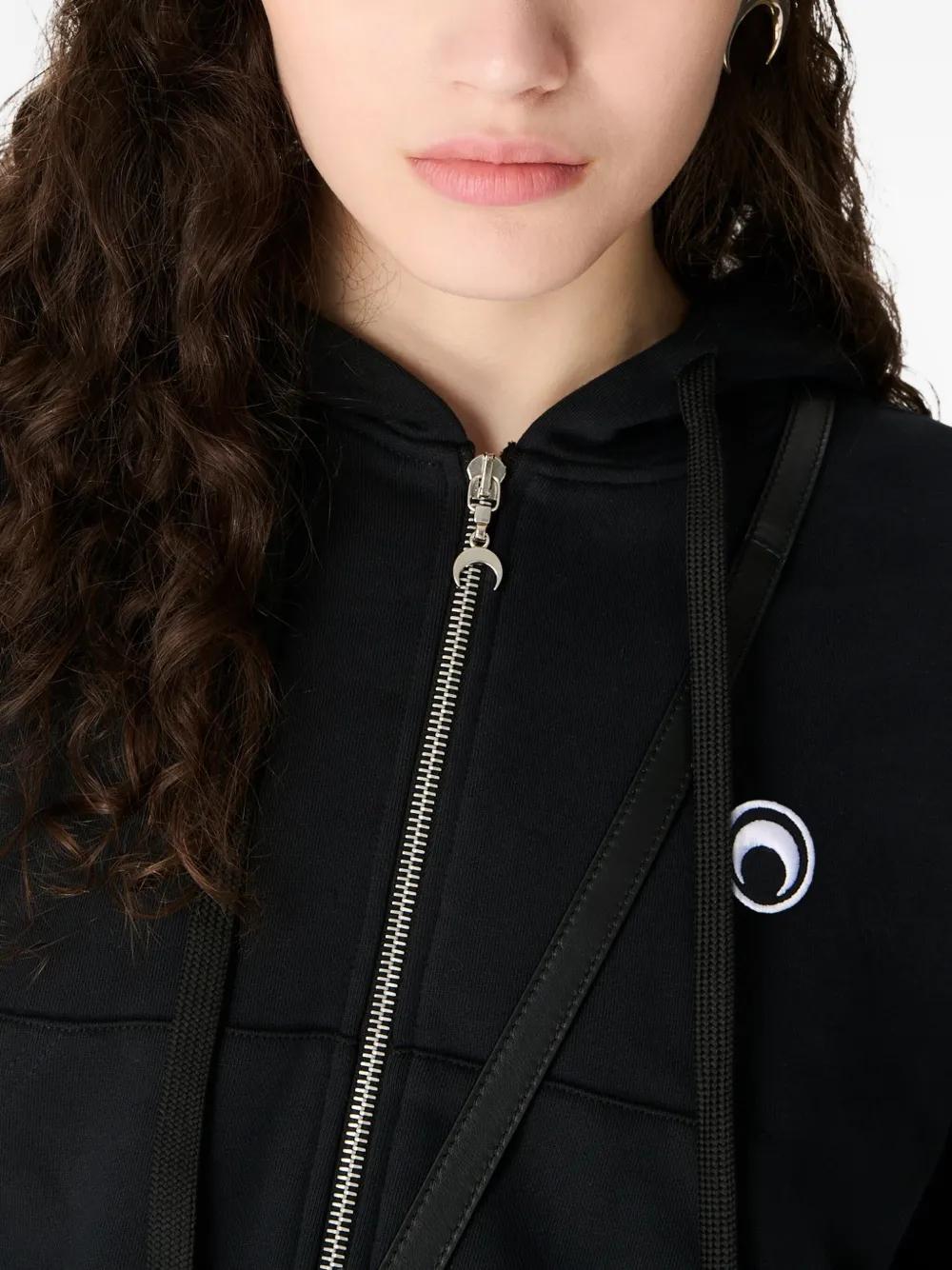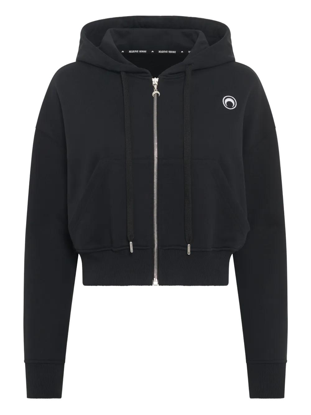 Marine Serre moon-logo zip-fastening hoodie - Black