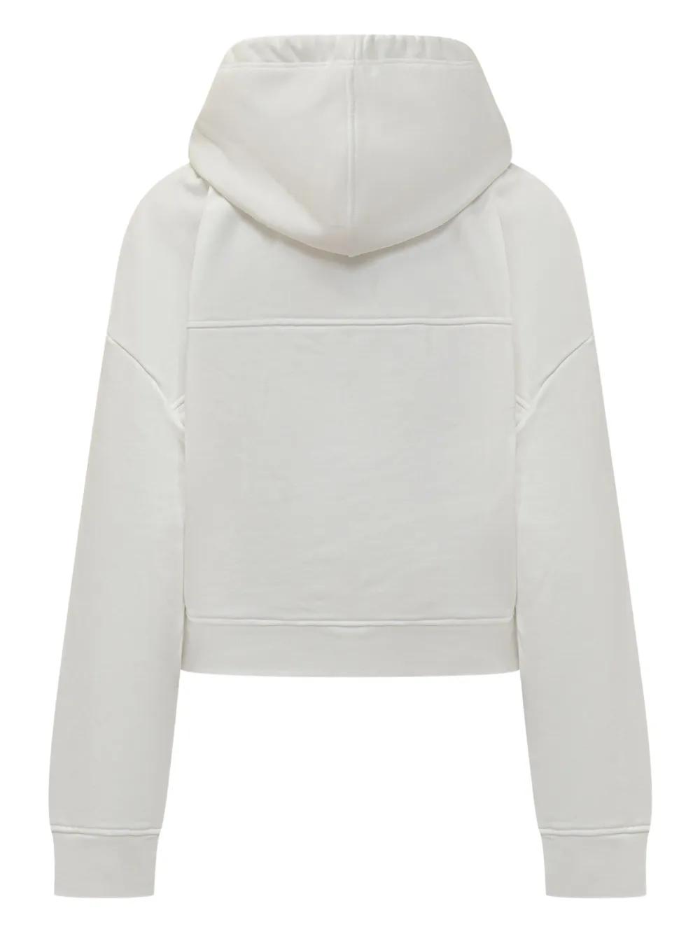 black cotton logo print to the front drawstring hood short front zip fastening long sleeves straight hem