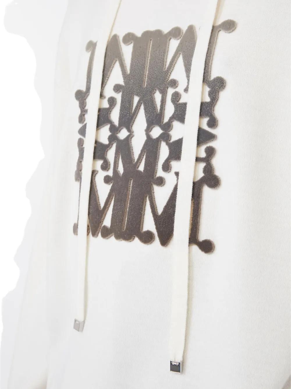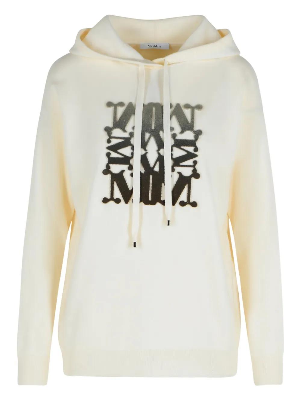 white hooded neck drawstring hood ribbed cuffs ribbed hem logo embellishment
