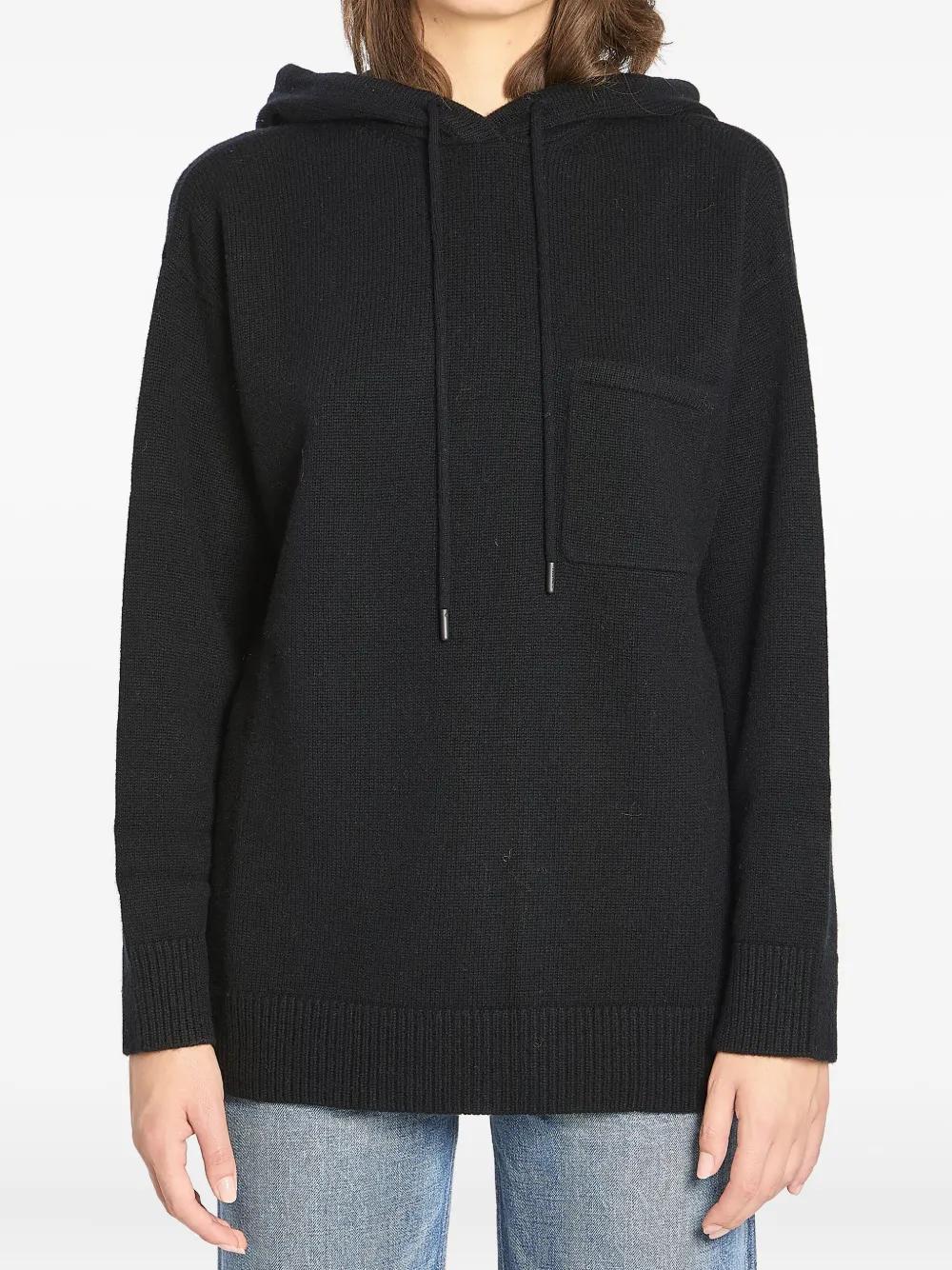 black drawstring hood long sleeves patch pocket ribbed cuffs ribbed hem
