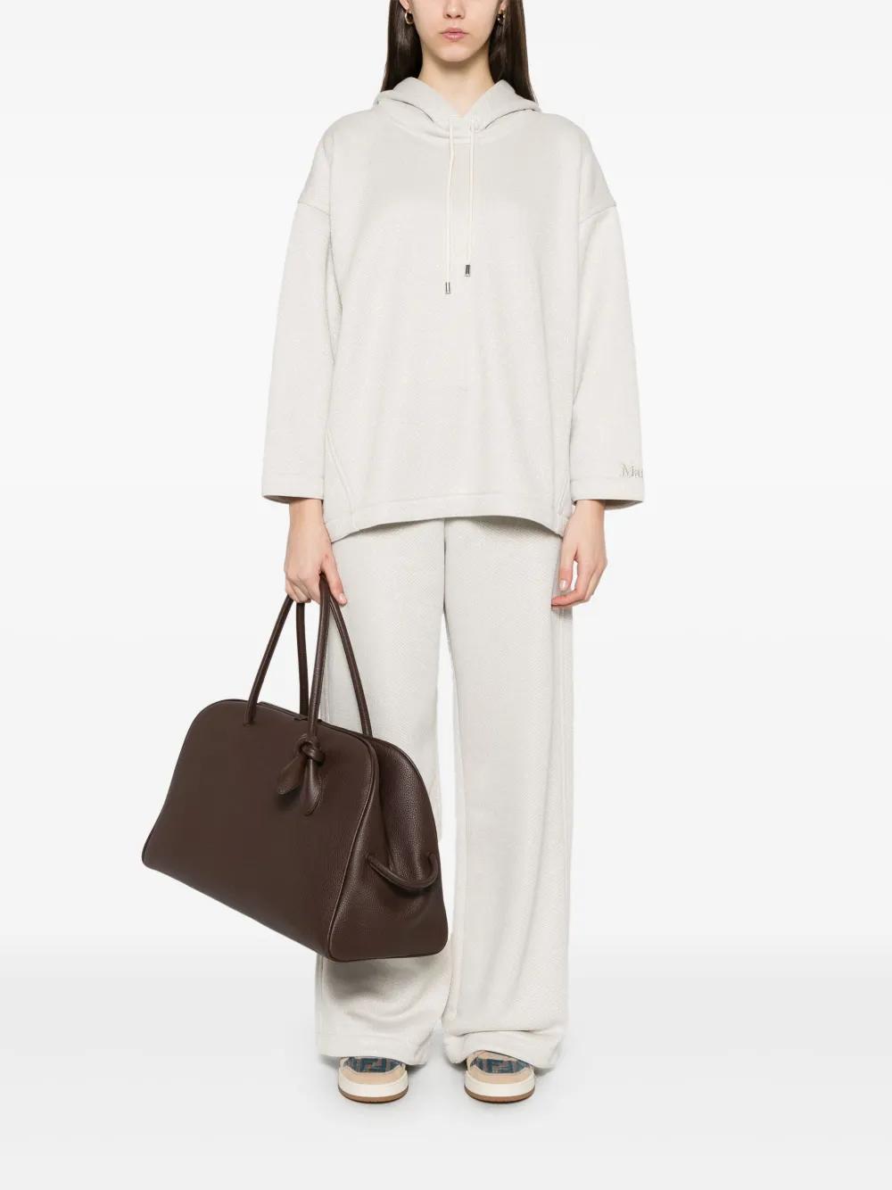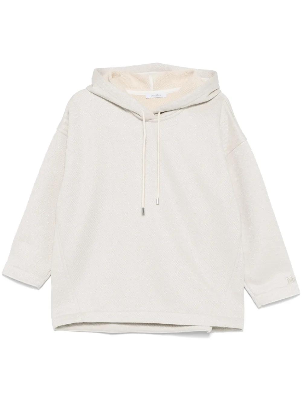 ecru drawstring hood drop shoulder long sleeves lurex detailing