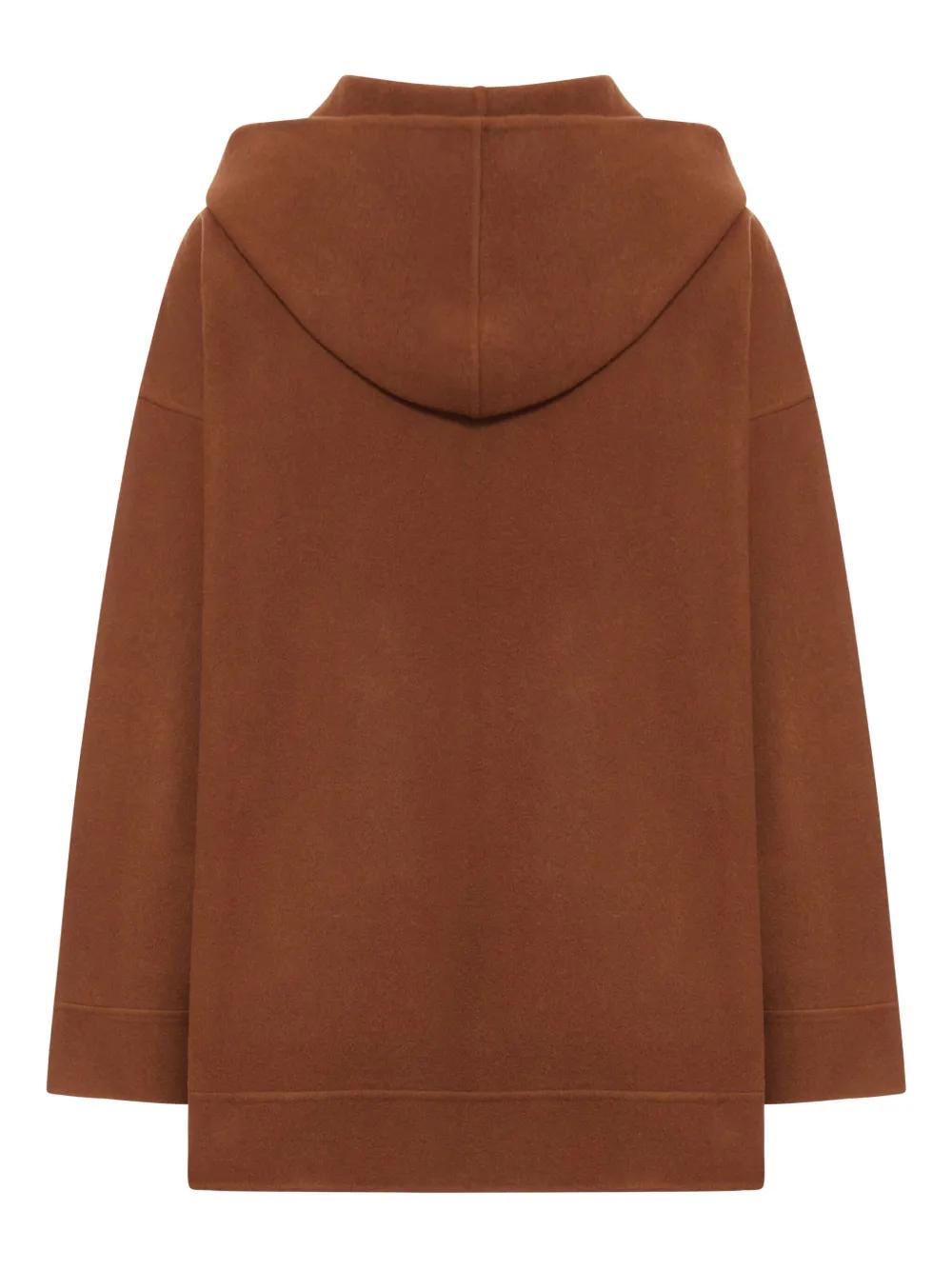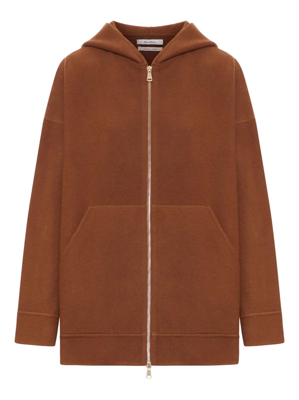 brown hooded neckline zip fastening long sleeves kangaroo pockets straight hemline