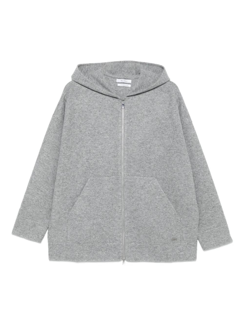 grey hooded neckline zip fastening long sleeves two patch pockets