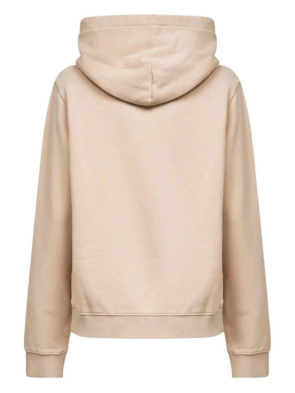 beige adjustable drawstring hood leopard lettering embroidered trim kangaroo pocket ribbed cuffs ribbed hem