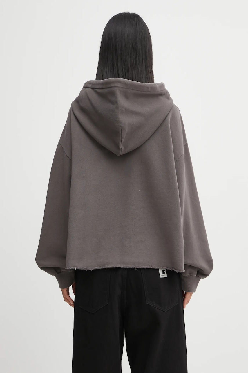 MM6 Maison Margiela bluza bawełniana damska kolor szary z kapturem z aplikacją S62GU0142.M25024.810