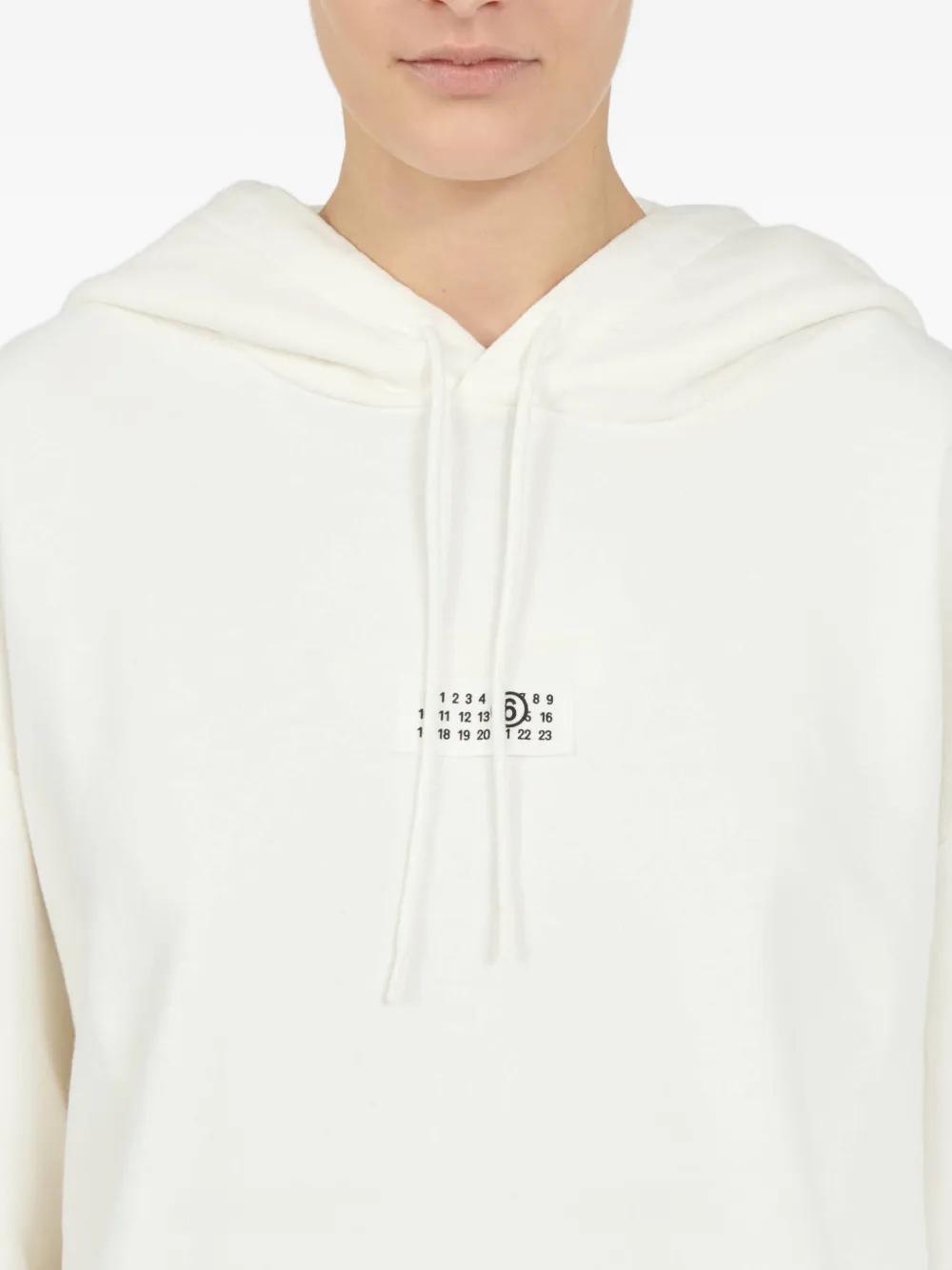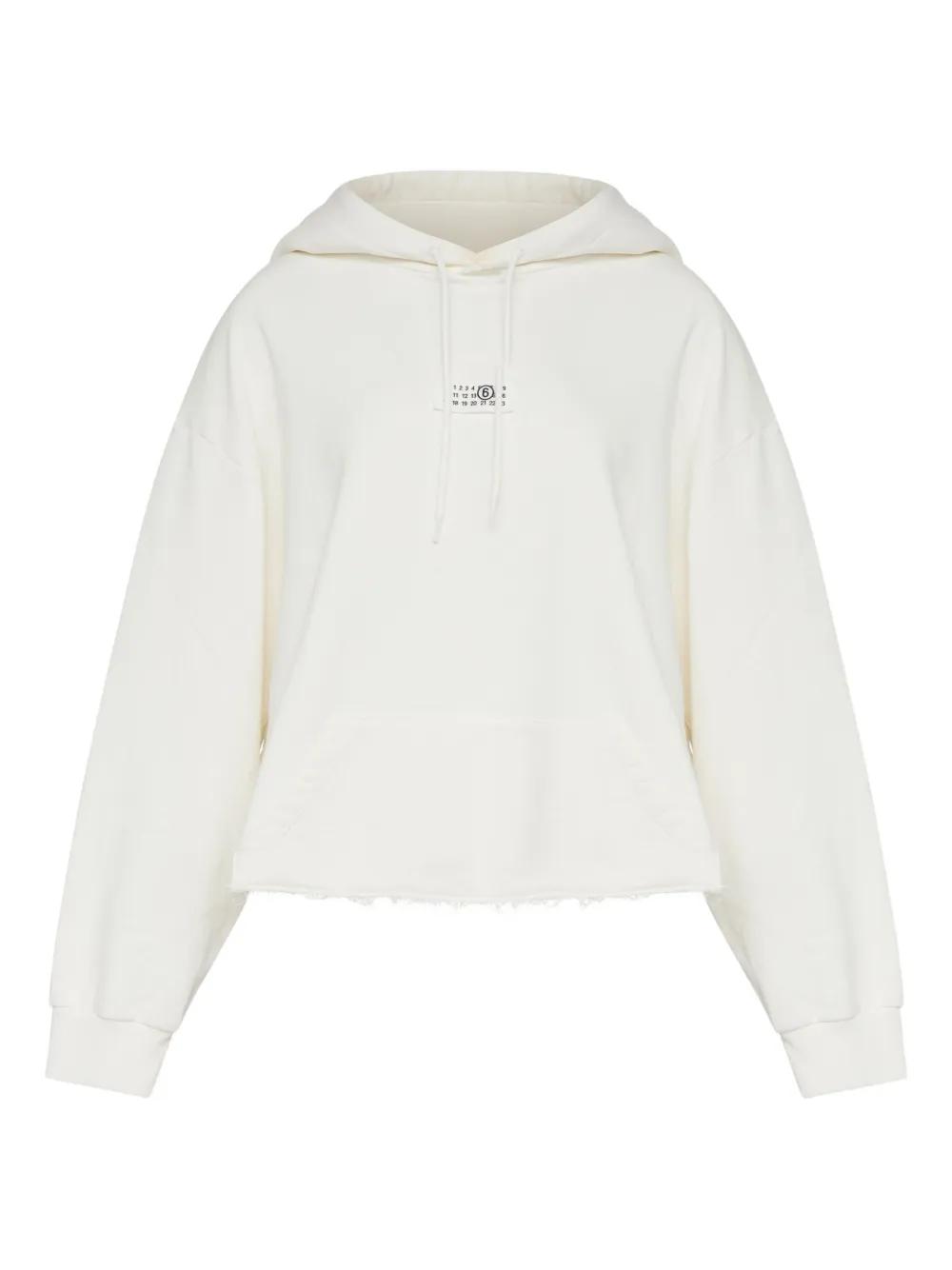 MM6 Maison Margiela frayed-hem logo hoodie - White