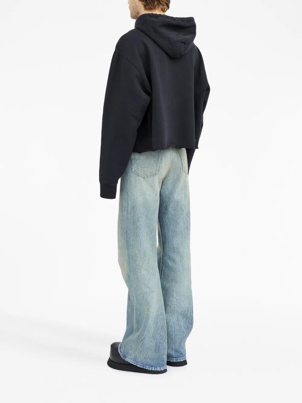 black cotton logo print to the front drawstring hood short front zip fastening long sleeves straight hem