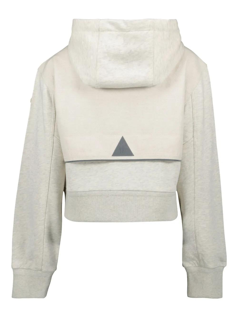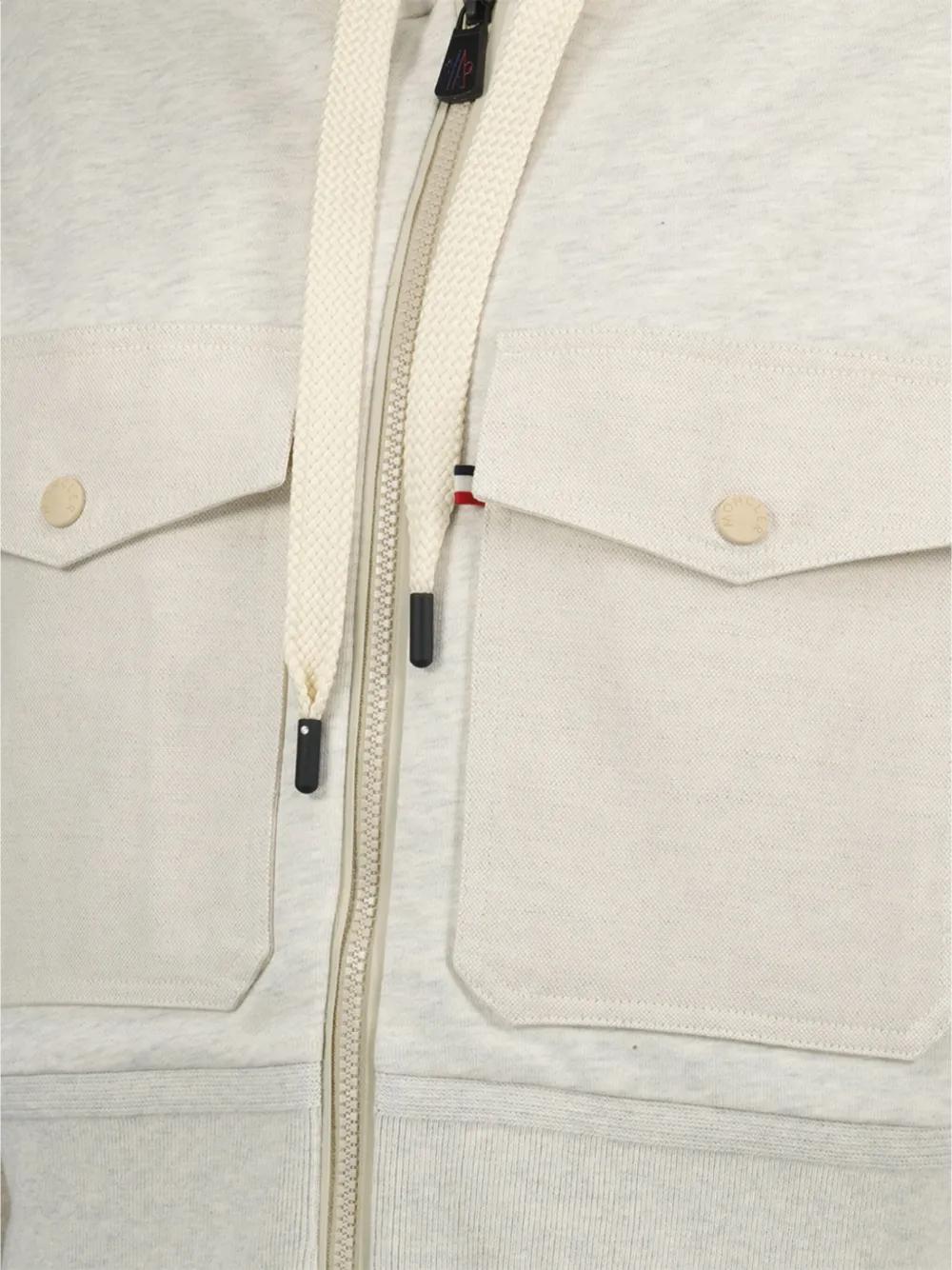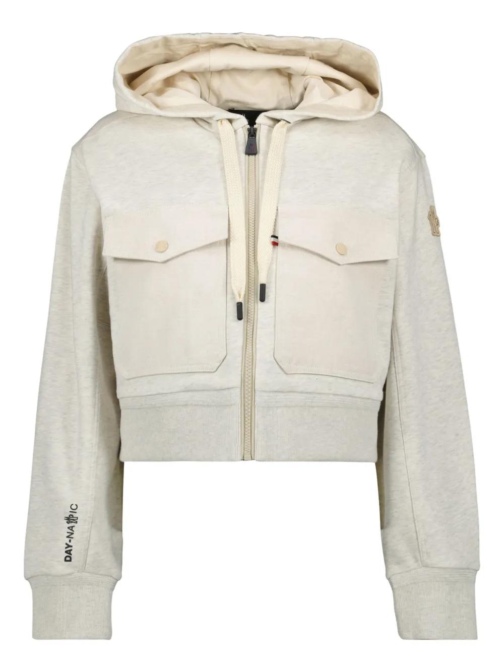 light grey front zip fastening drawstring hood ribbed cuffs and hem two chest flap pockets