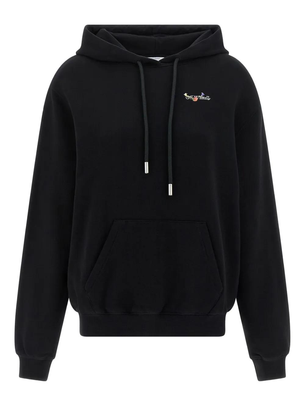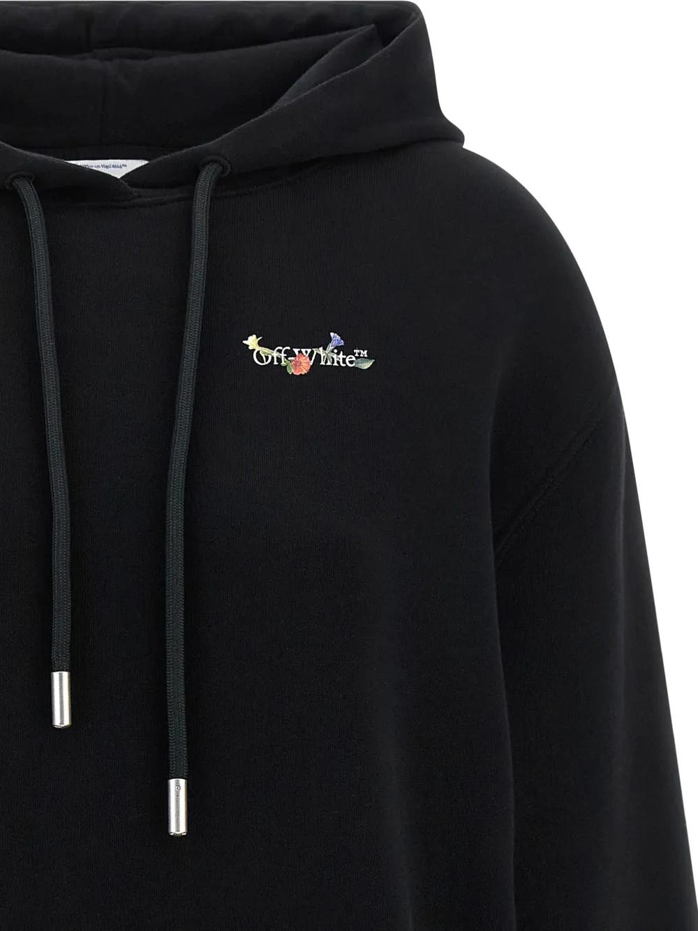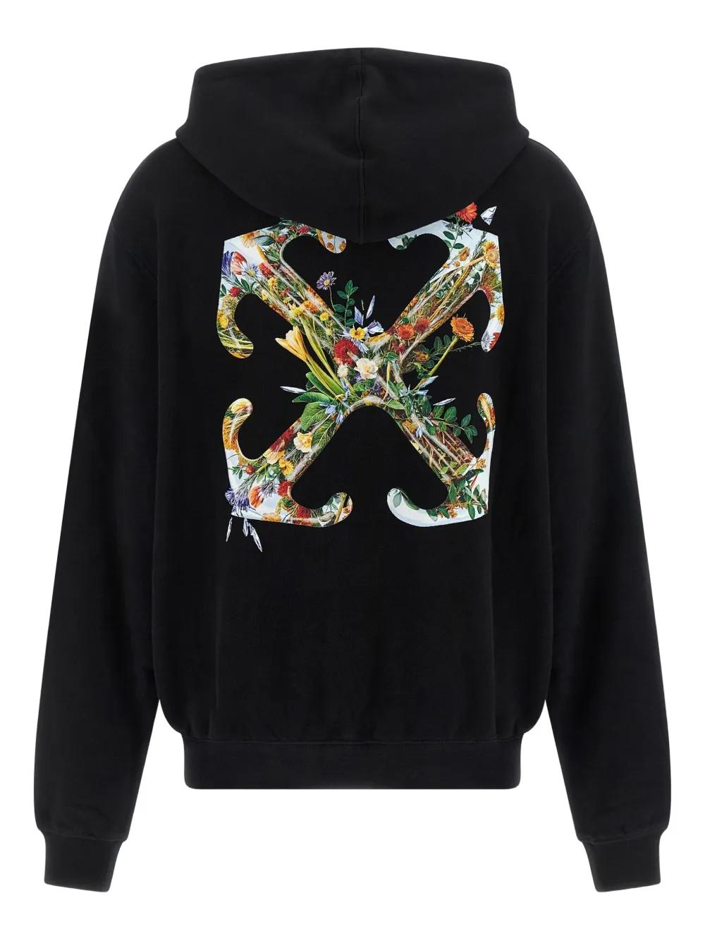 black brushed cotton arrow and flower print kangaroo pocket long cuffed sleeves dropped shoulders
