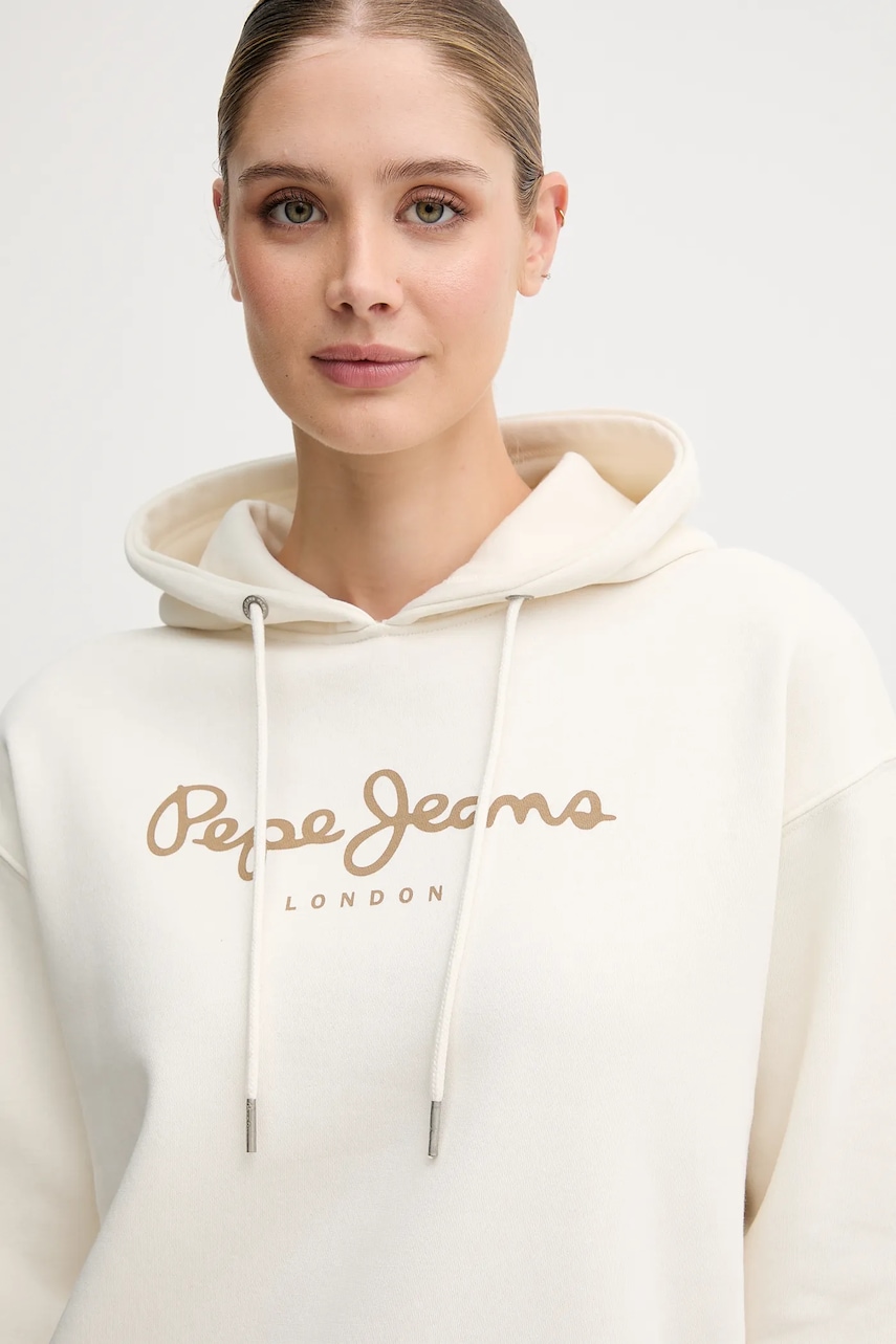 Pepe Jeans bluza damska kolor beżowy z kapturem z nadrukiem PL5800001