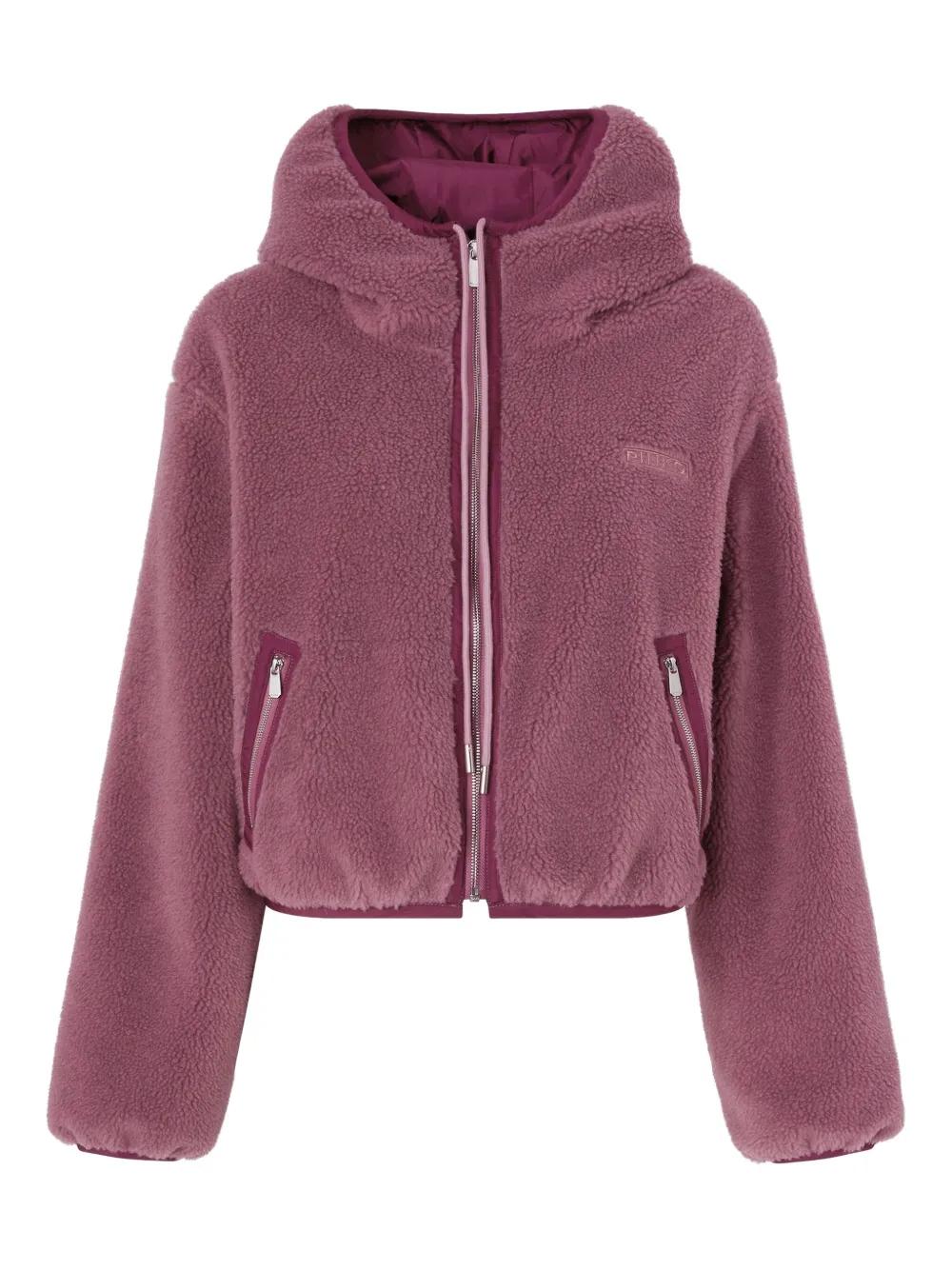 light brown embossed logo drawstring hood zip fastening ribbed hem stripe detail