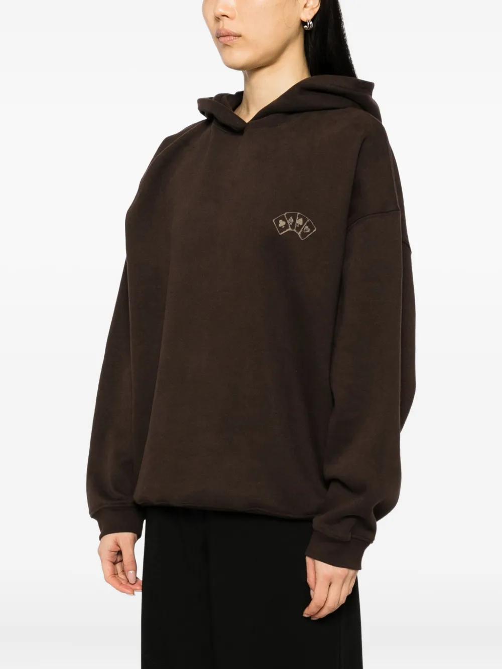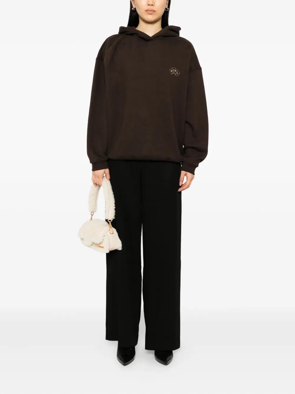 beige embroidered logo drawstring hood long sleeves front pouch pocket ribbed hem