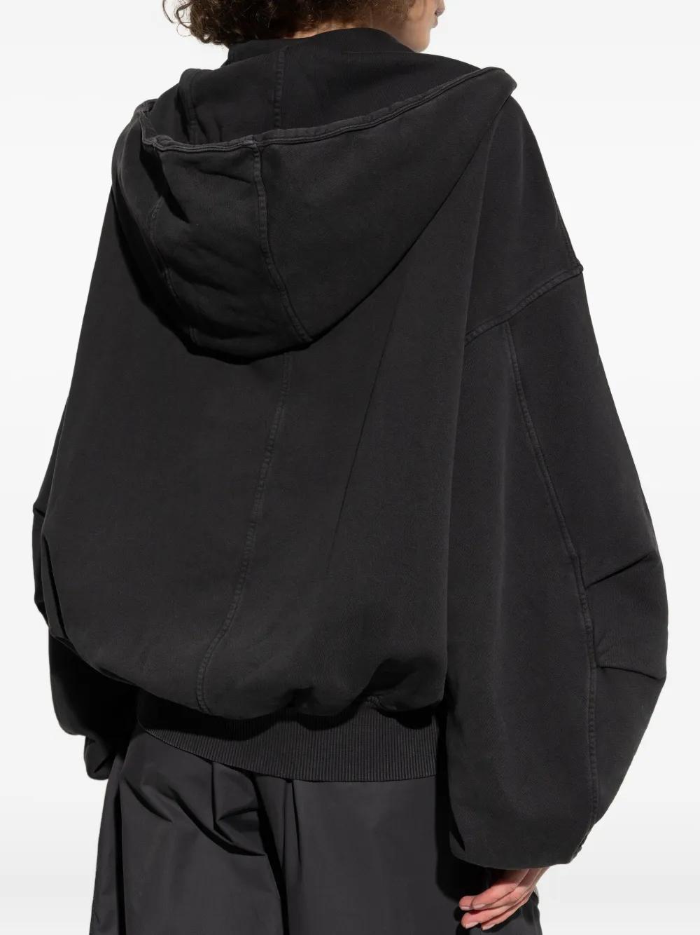 black hooded neckline logo-plaque zip fastening dropped shoulders long sleeves ribbed hem