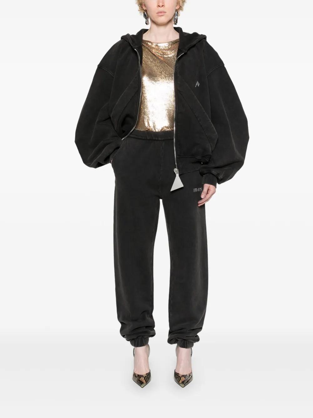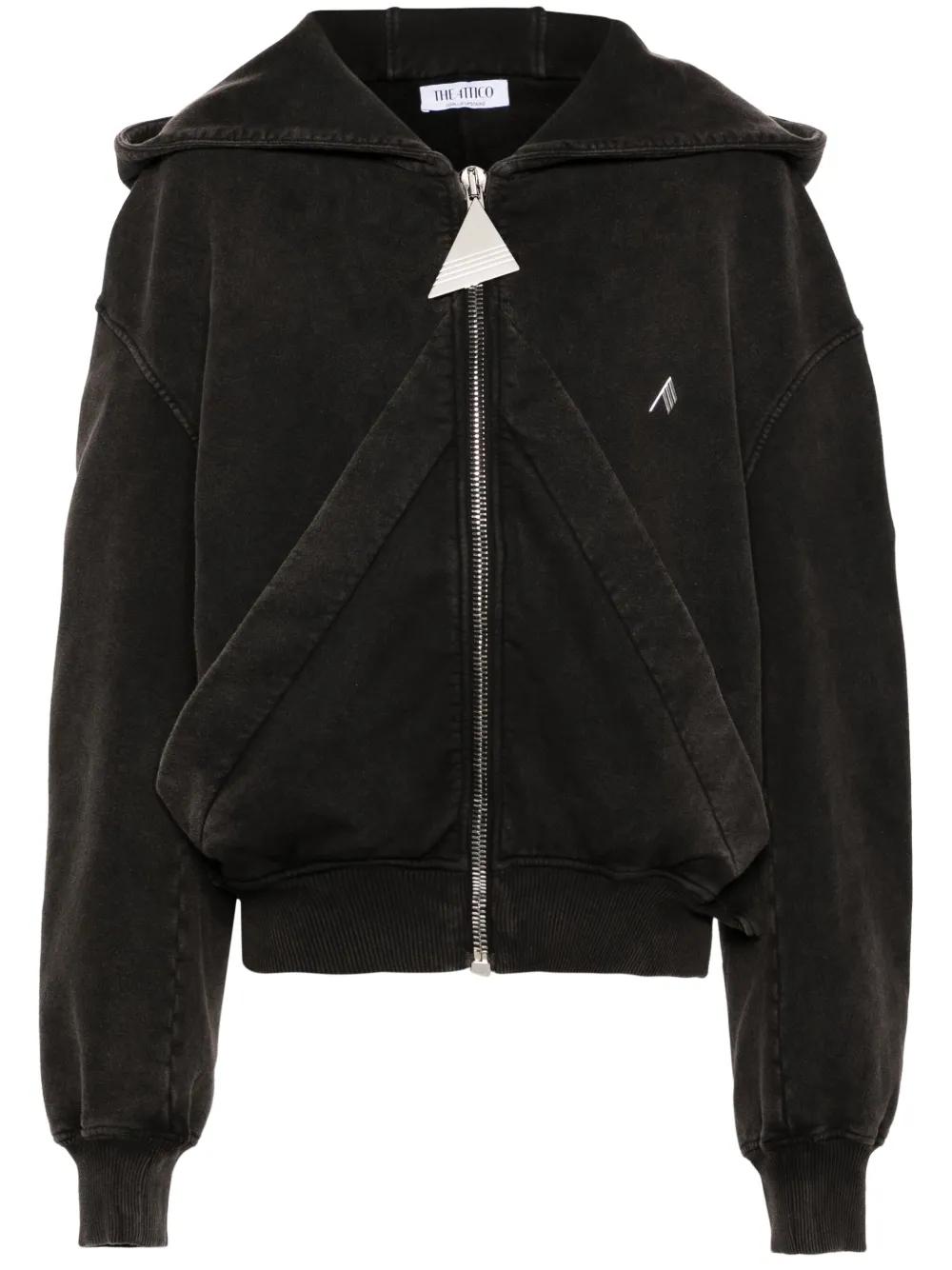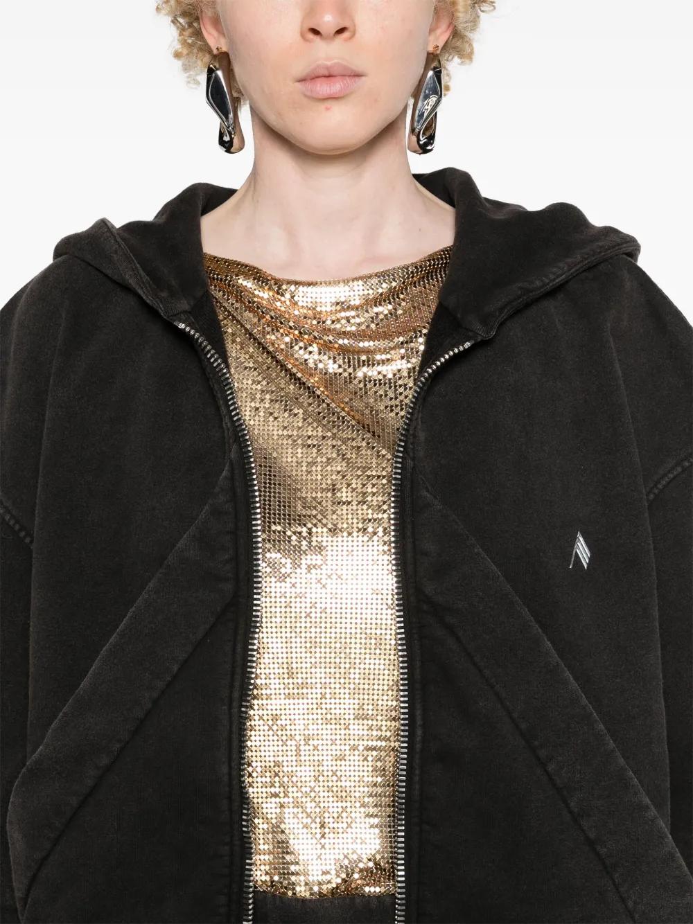 dark grey stretch-cotton jersey texture logo print at the chest silver-tone hardware classic hood front zip fastening branded zip puller drop shoulder long wide sleeves ribbed cuffs two diagonal pockets to the sides French terry lining ribbed hem