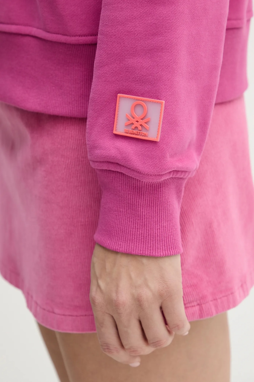 United Colors of Benetton bluza damska kolor różowy z kapturem z nadrukiem 3WNWD201C