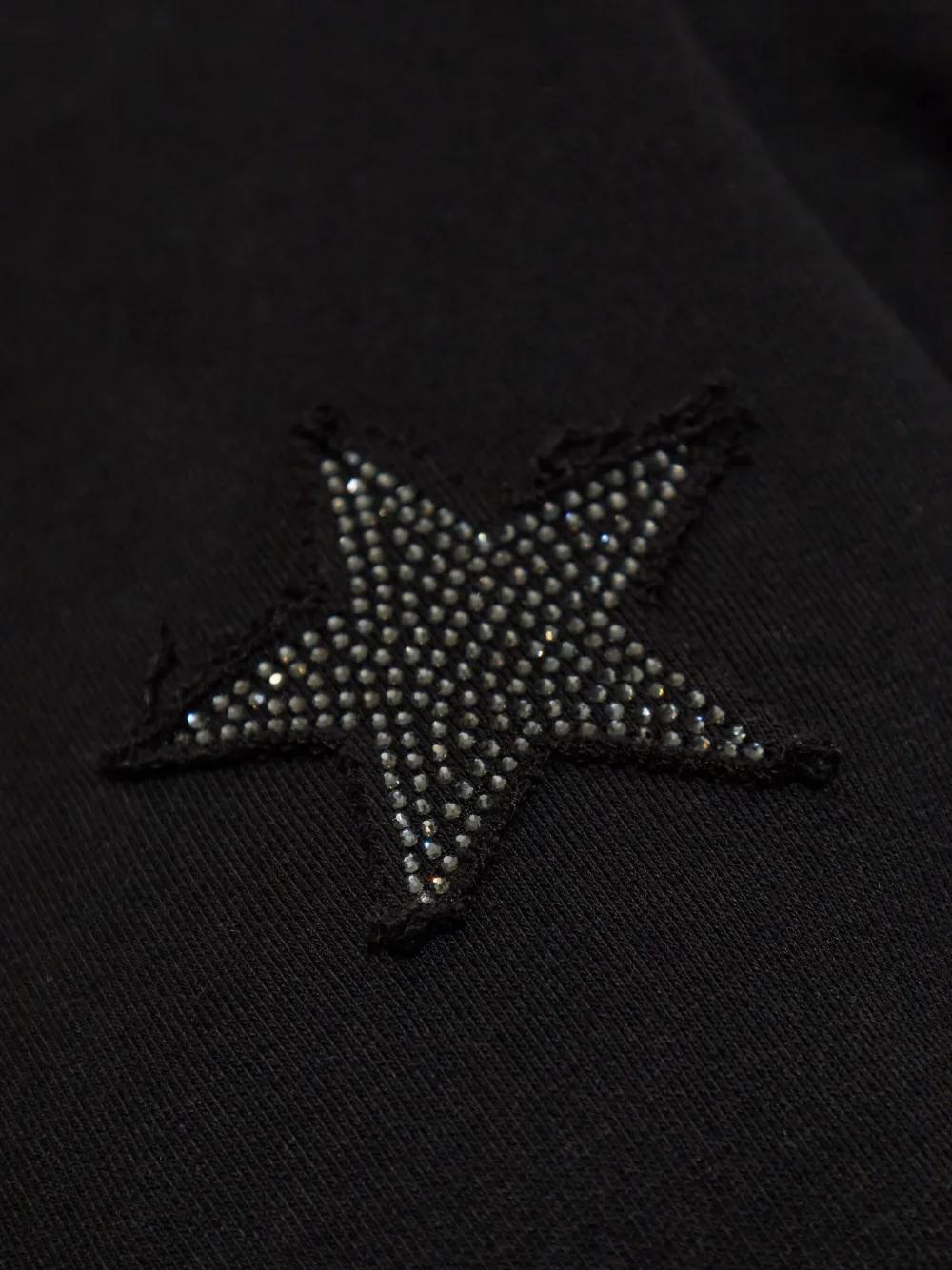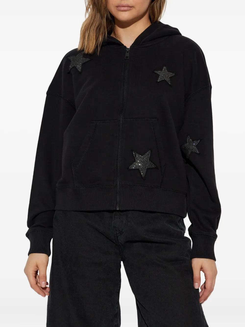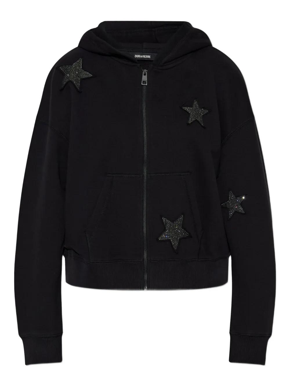 black crystal star embellishments hooded design front zip fastening kangaroo pockets