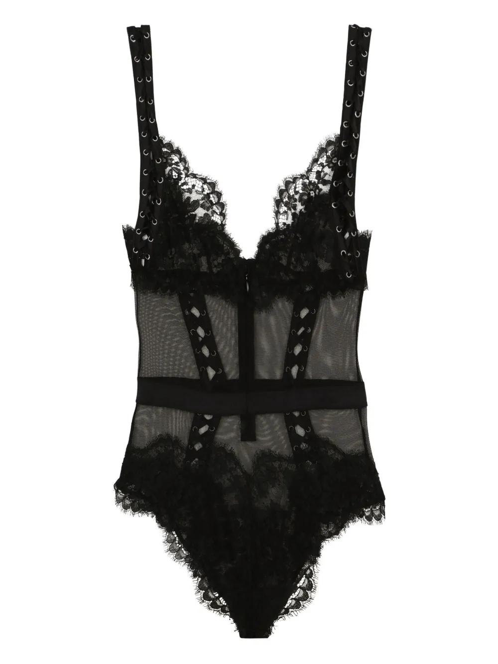Dolce & Gabbana floral-lace V-neck bodysuit - Black