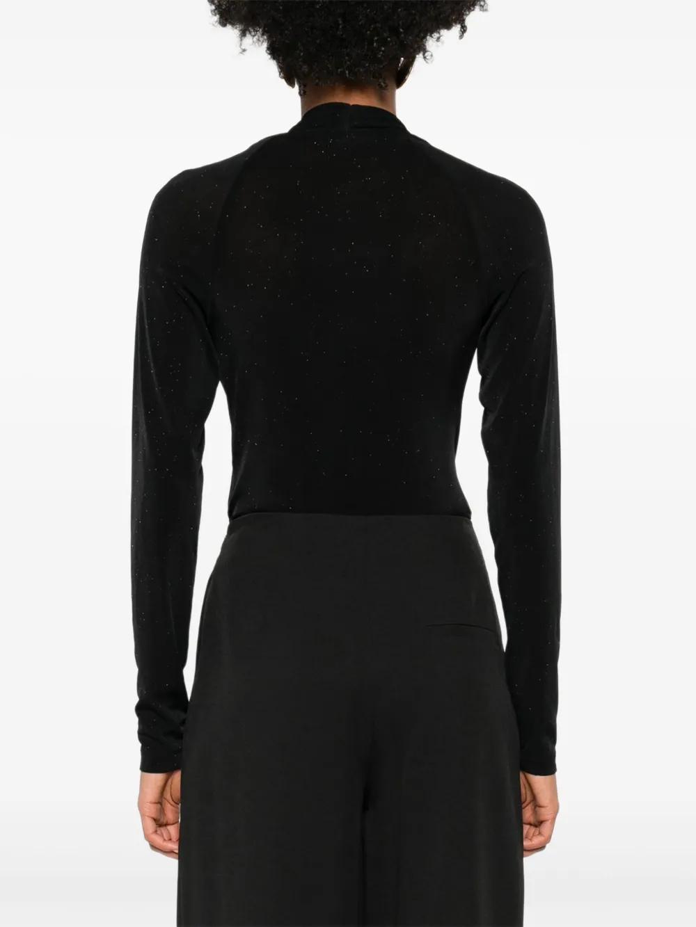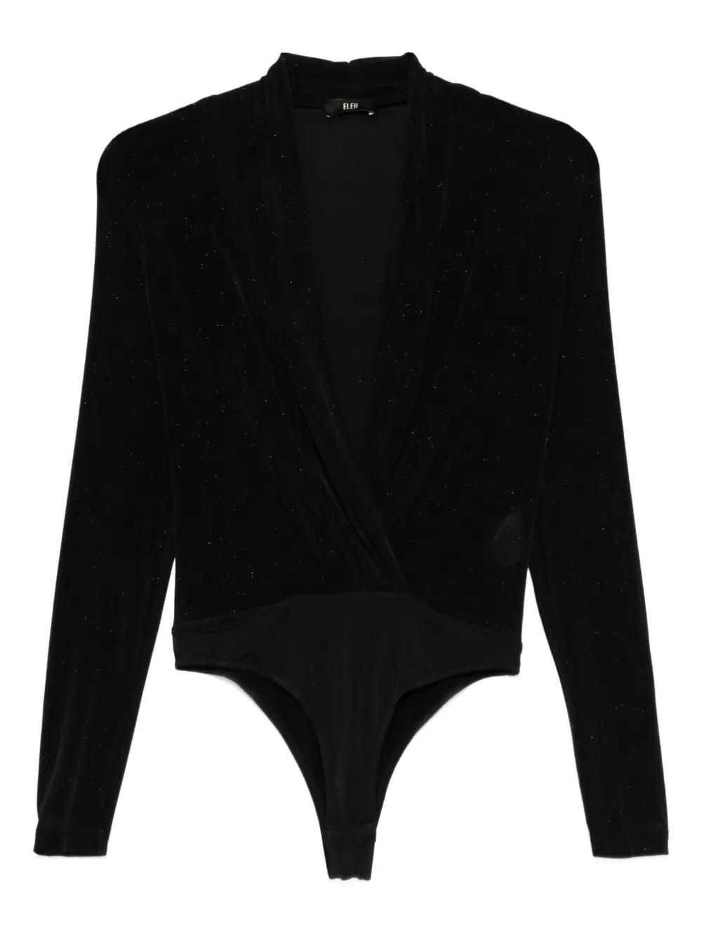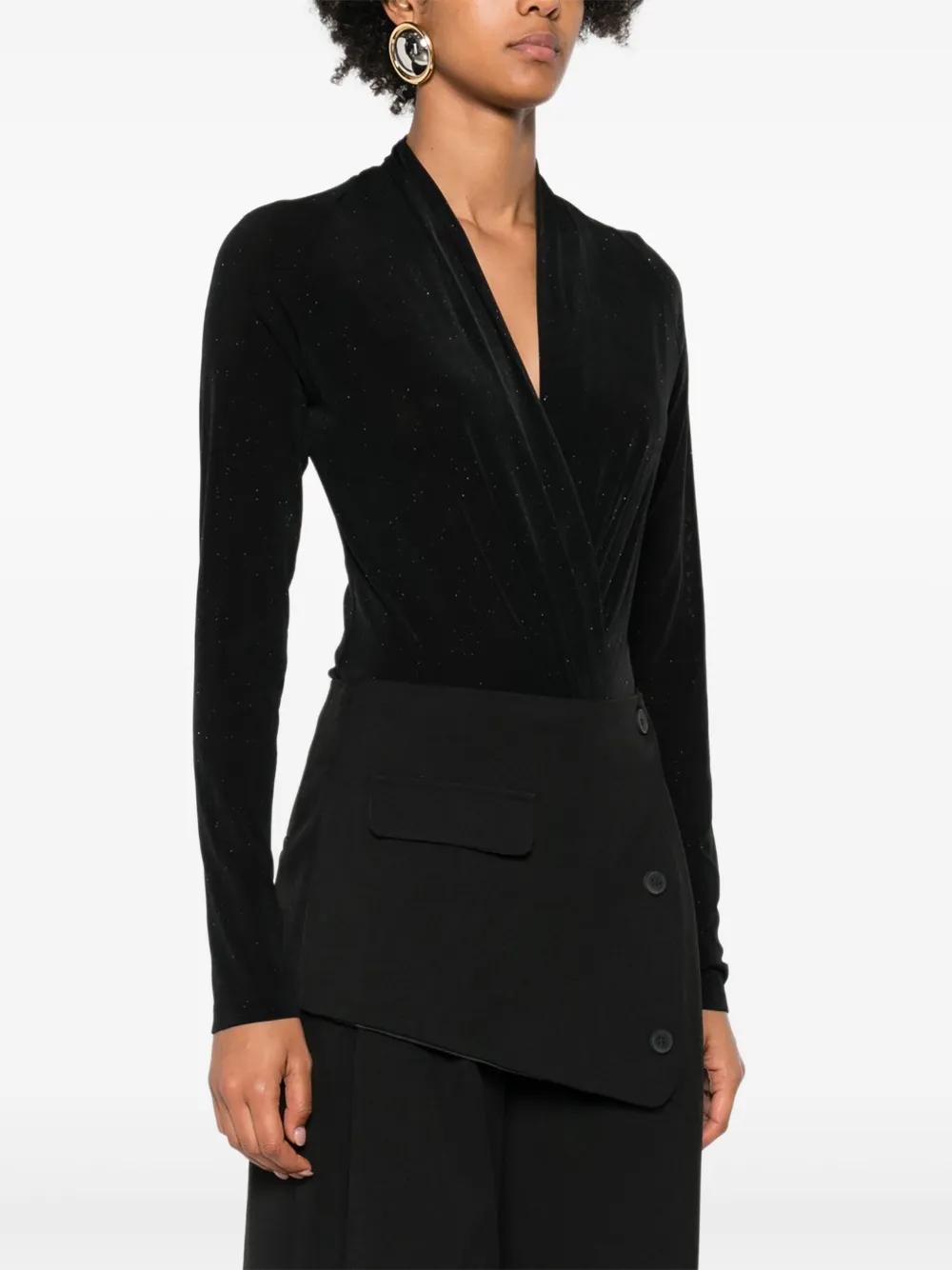black long sleeves v-neck wrap effect Just a reminder that this piece must be tried on over your own garments.