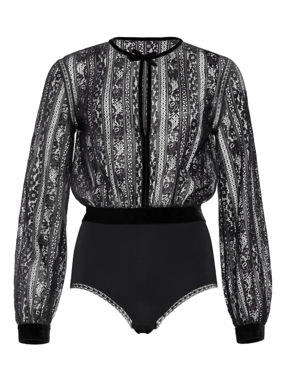 ERES Voltige lace-panel velvet bodysuit - Black