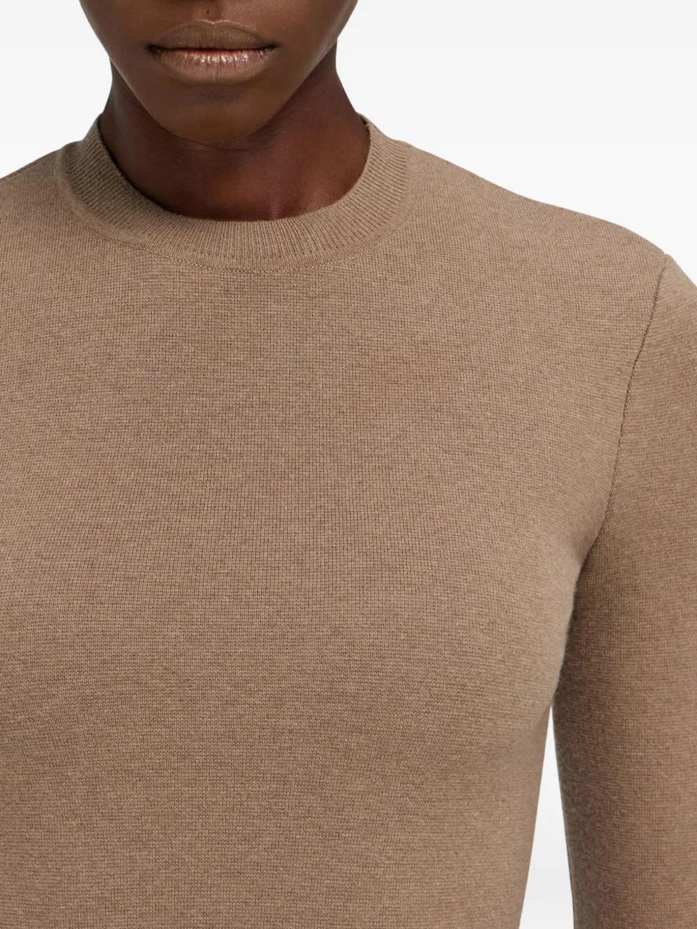 beige wool interlock knit close-fitting long sleeves crew neckline hook fastening Just a reminder that this piece must be tried on over your own garments.