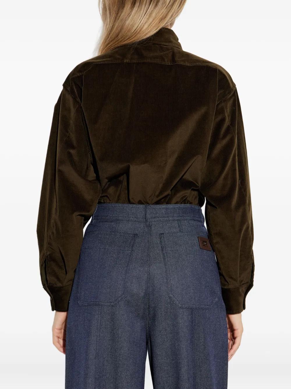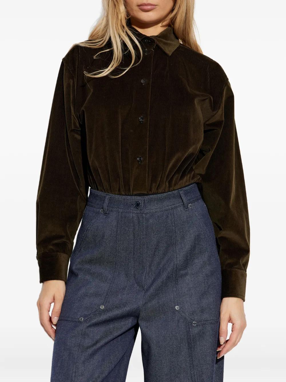 brown corduroy button fastening long sleeves classic collar elasticated hem Just a reminder that this piece must be tried on over your own garments.