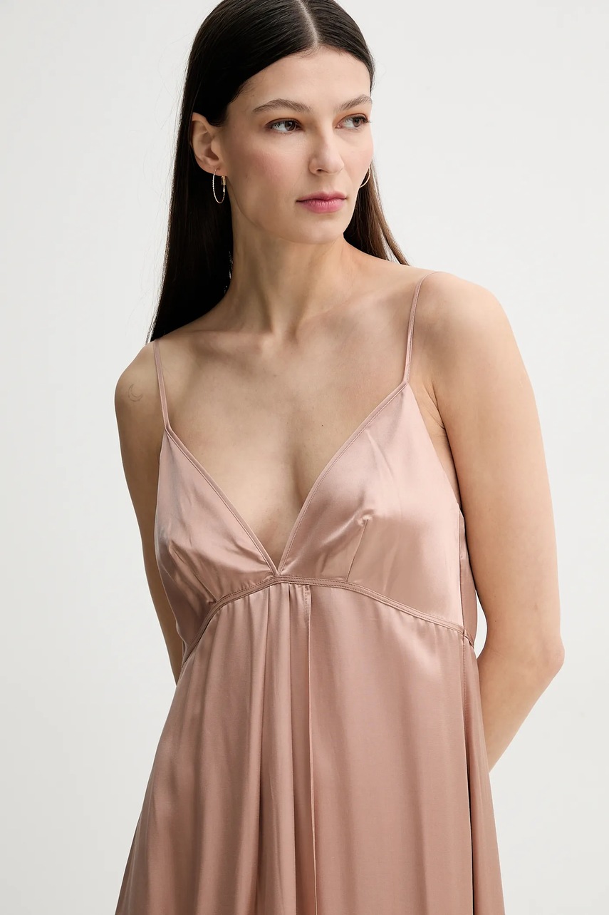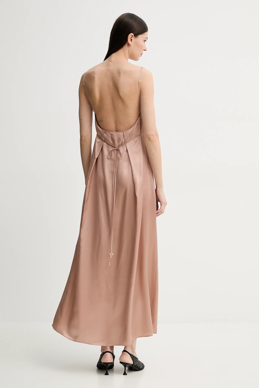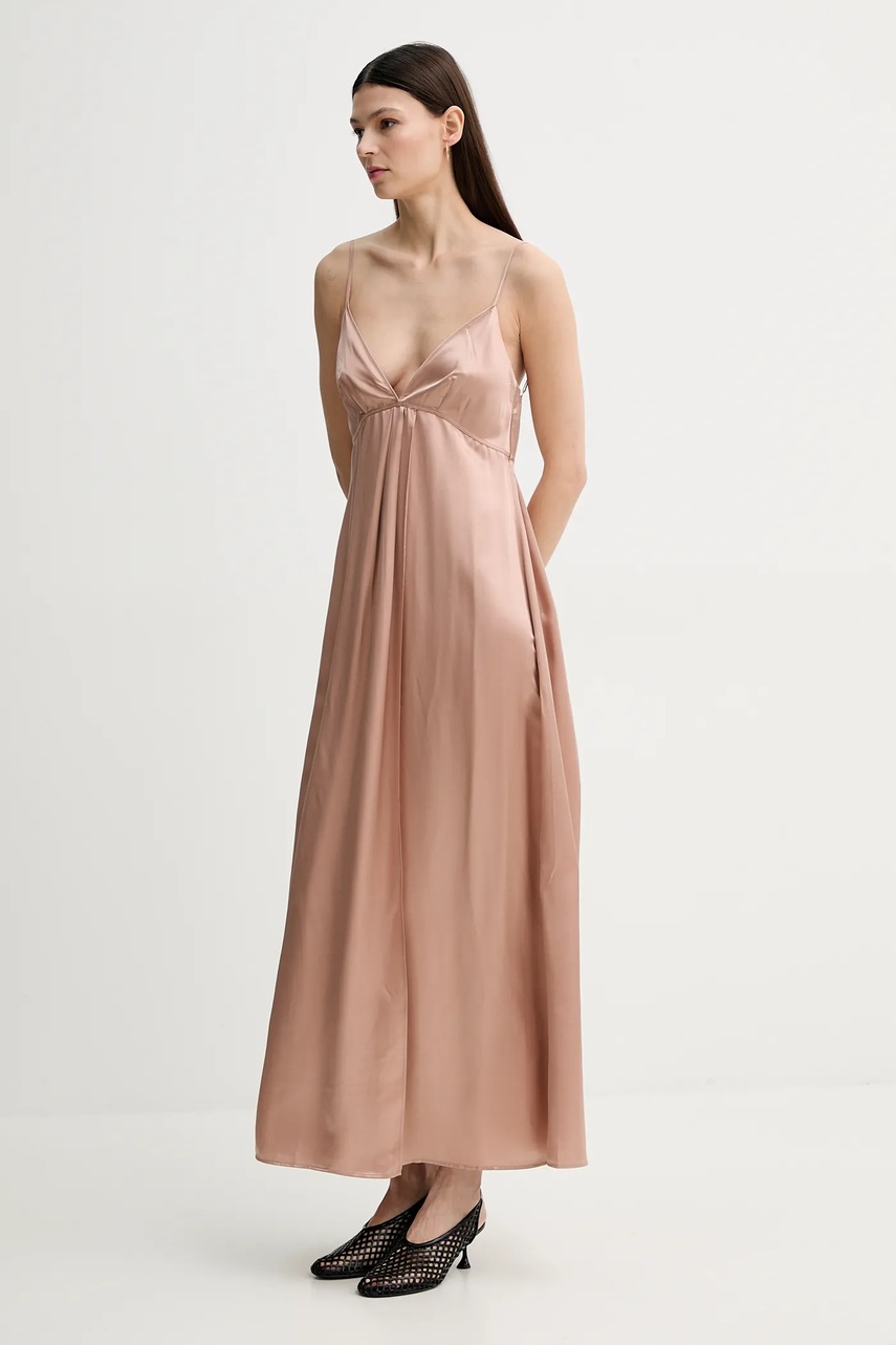 AERON sukienka z domieszką jedwabiu FELICITA kolor różowy maxi rozkloszowana DR582452